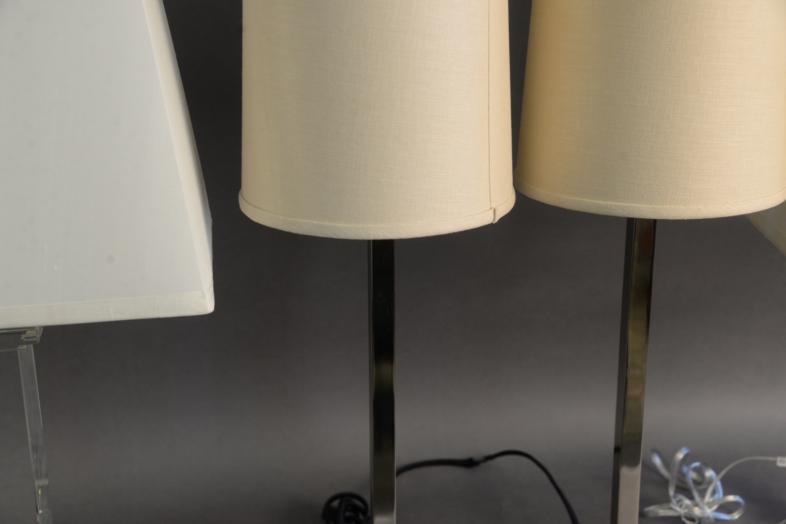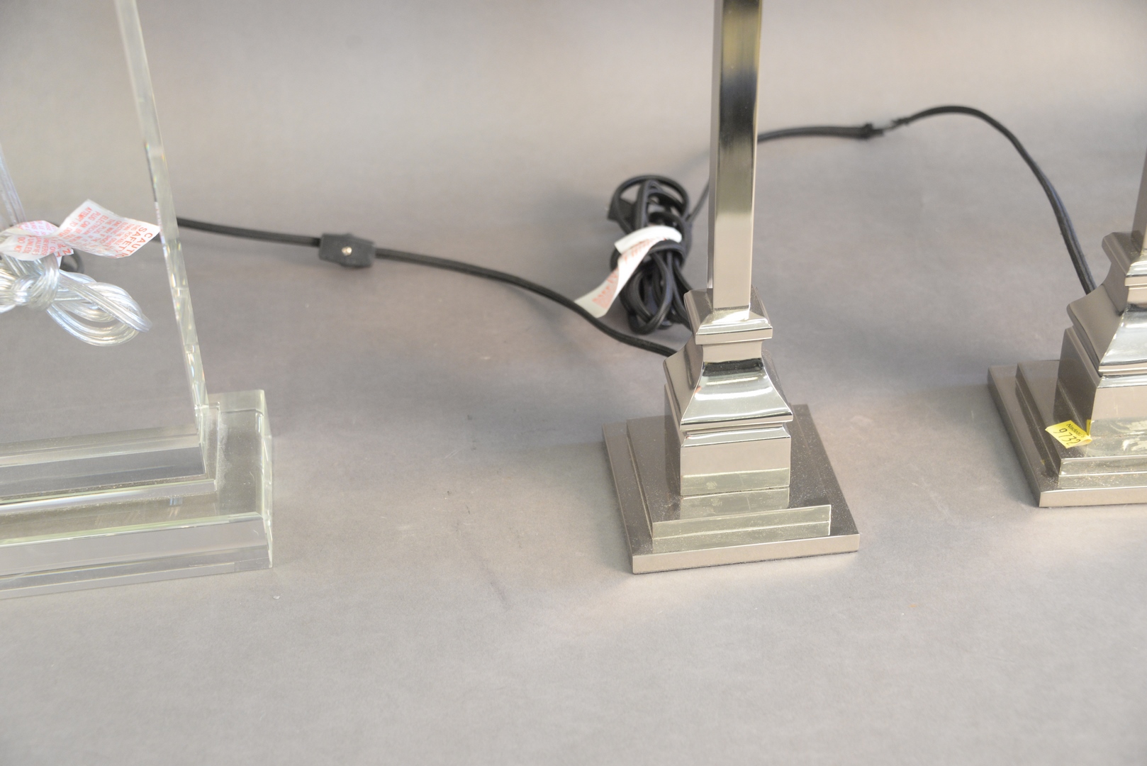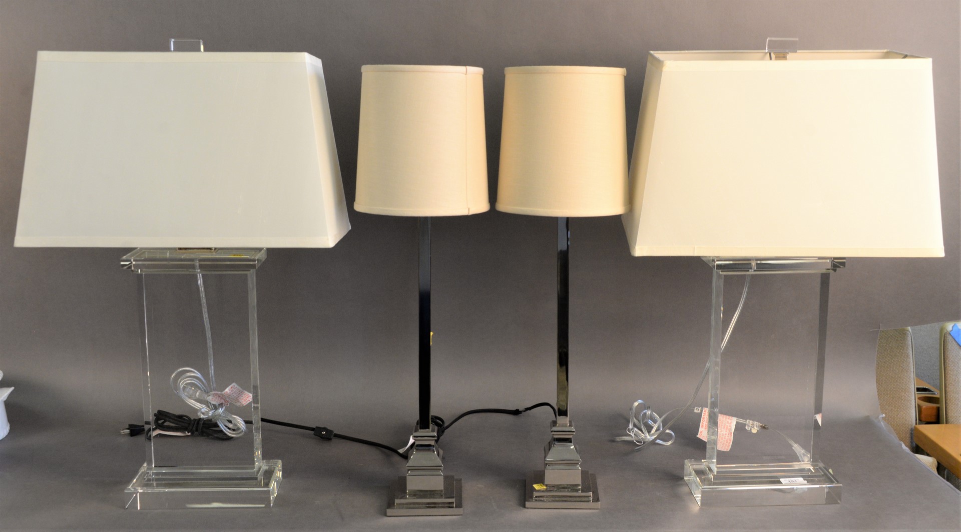 Two Pairs of Contemporary Table Lamps, to include a pair of glass and a pair of chrome, height 29 inches.