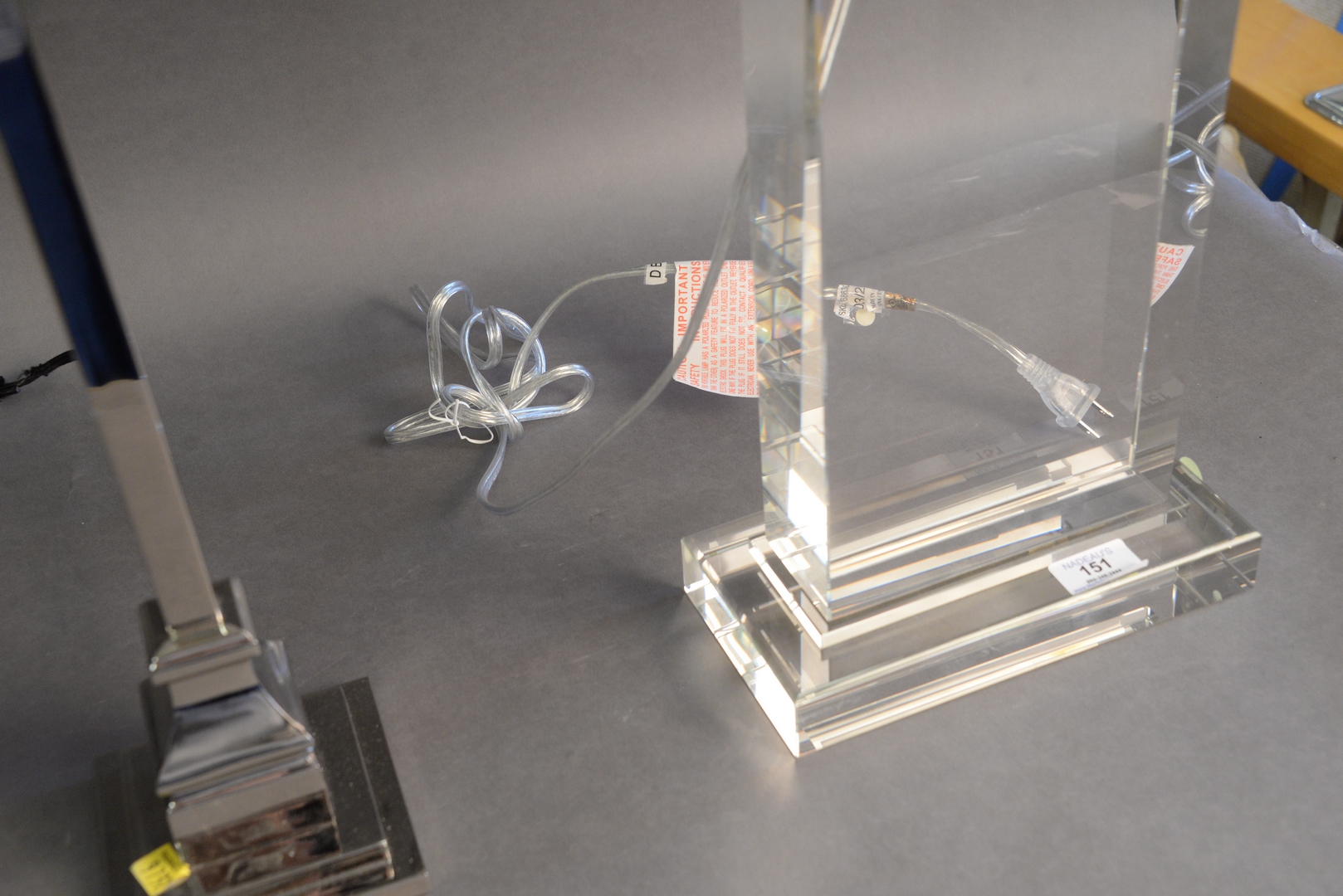 Lot 151: Two Pairs of Contemporary Table Lamps, to include a pair of glass and a pair of chrome, height 29 inches.