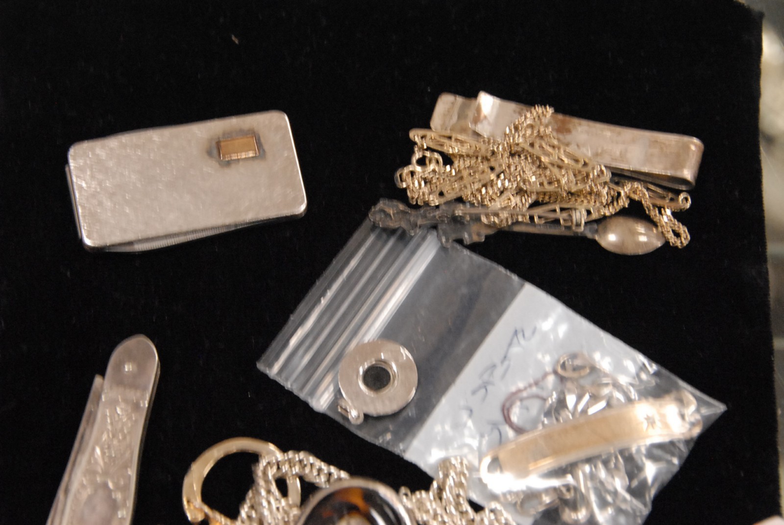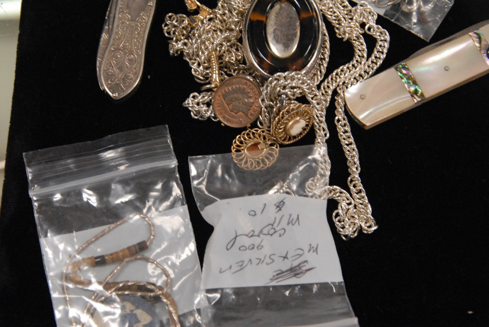 Bag lot of mostly silver jewelry to include bracelets, money clip, earrings, chains, etc