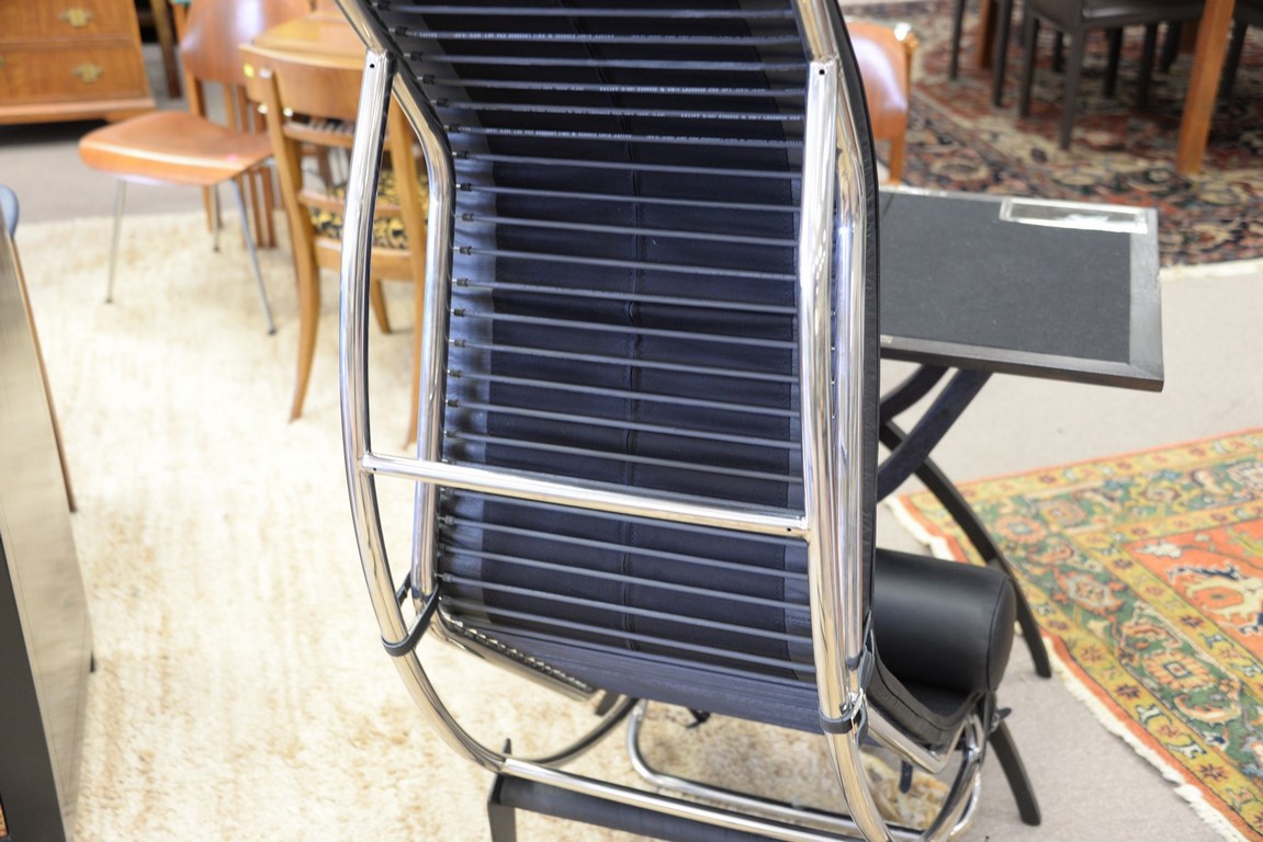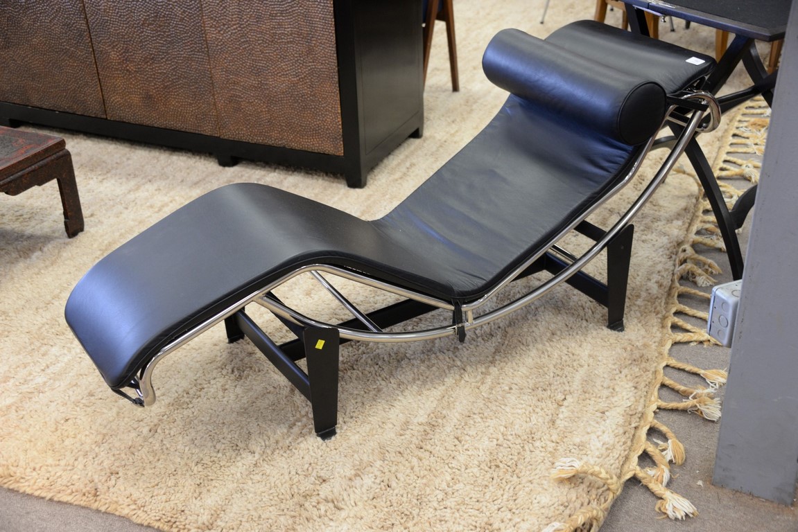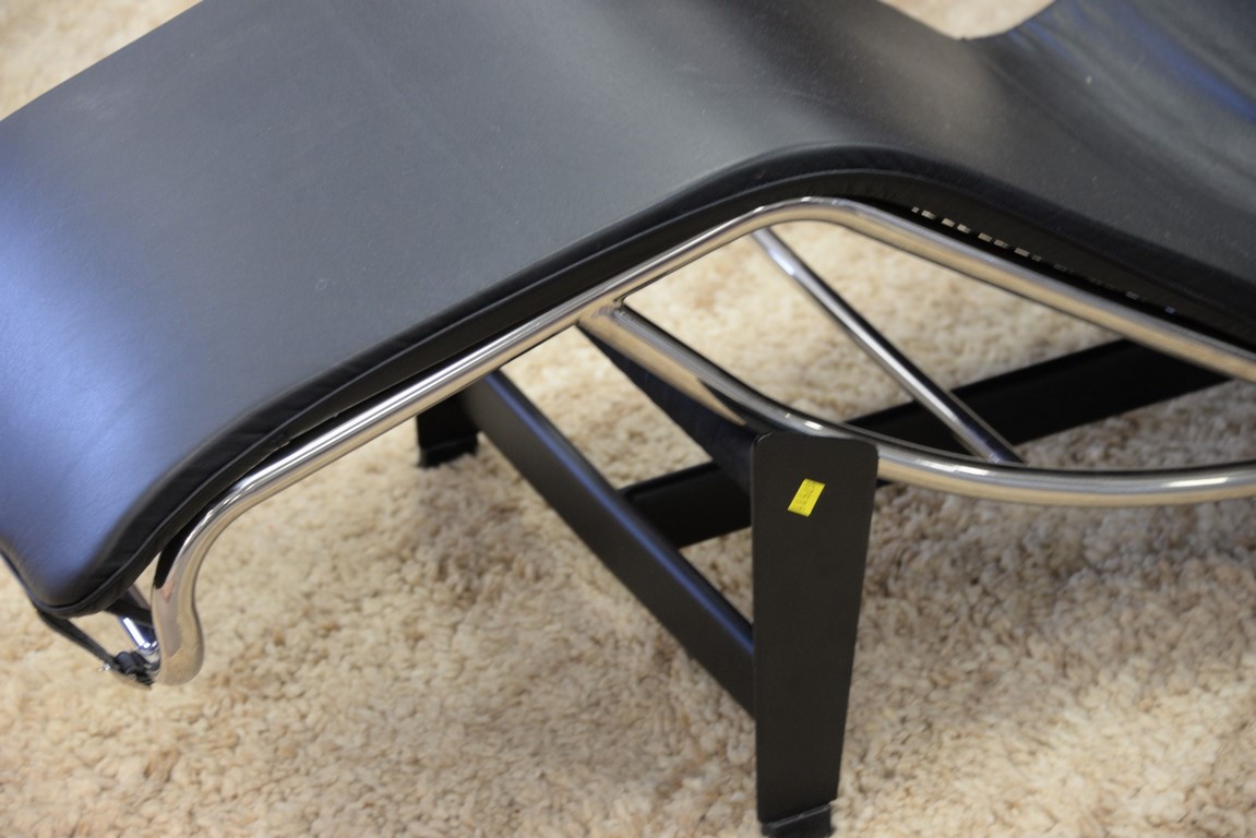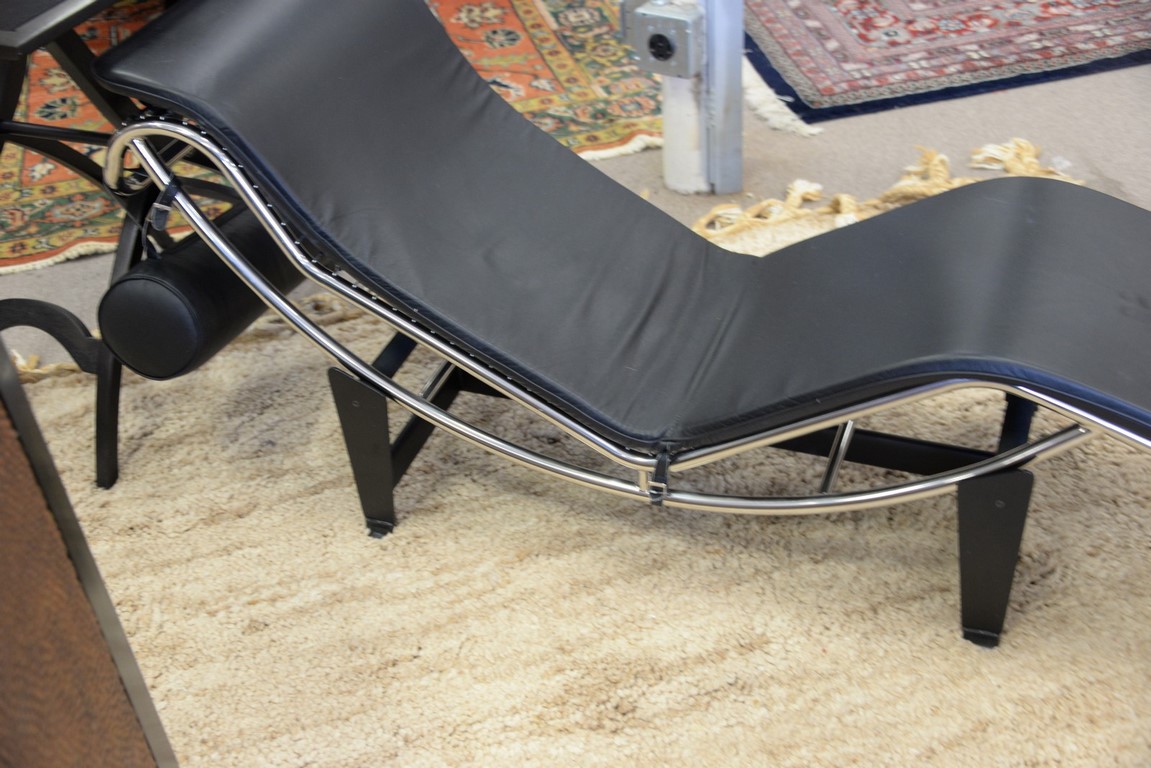 Corbusier style lounge chair, leather and chrome. lg. 66 in.