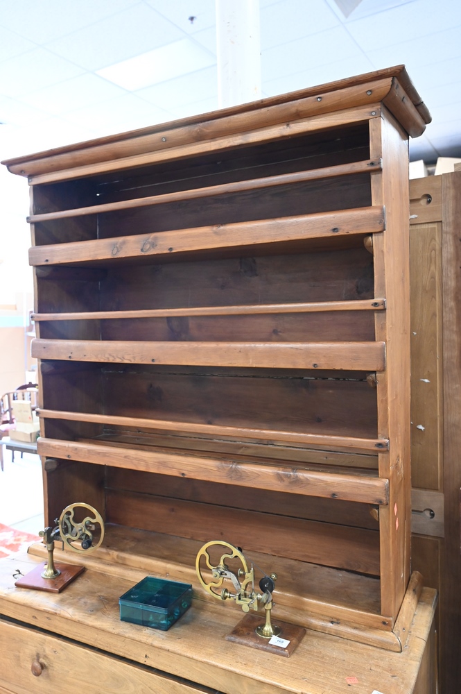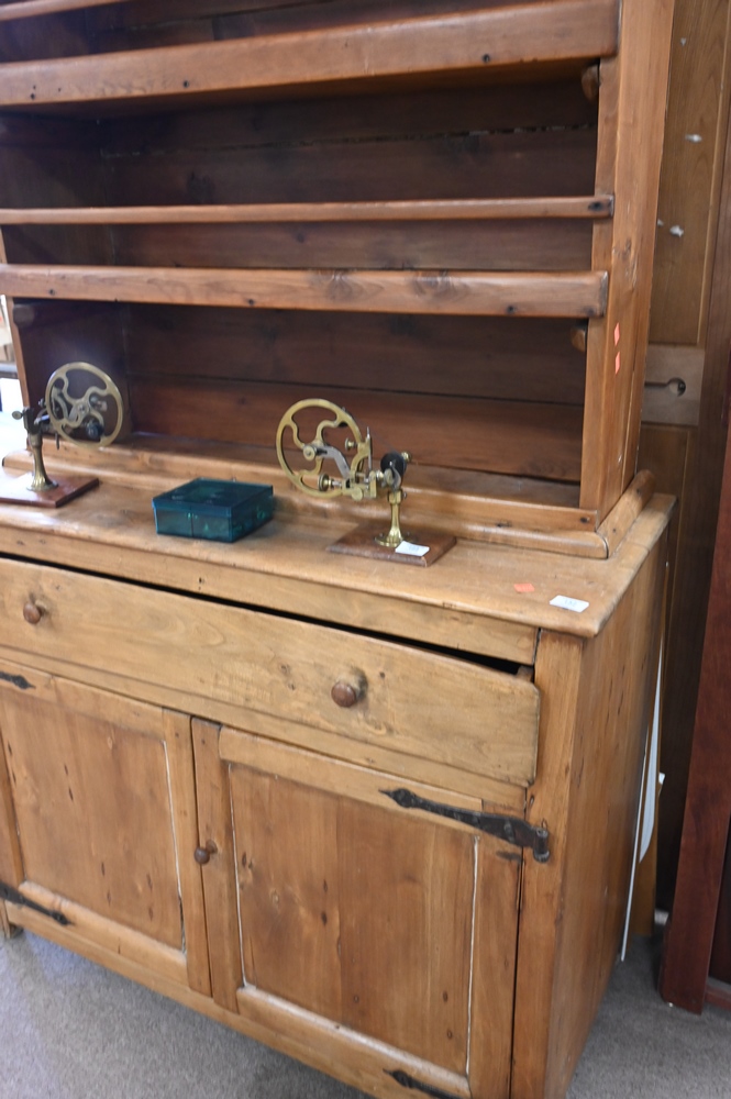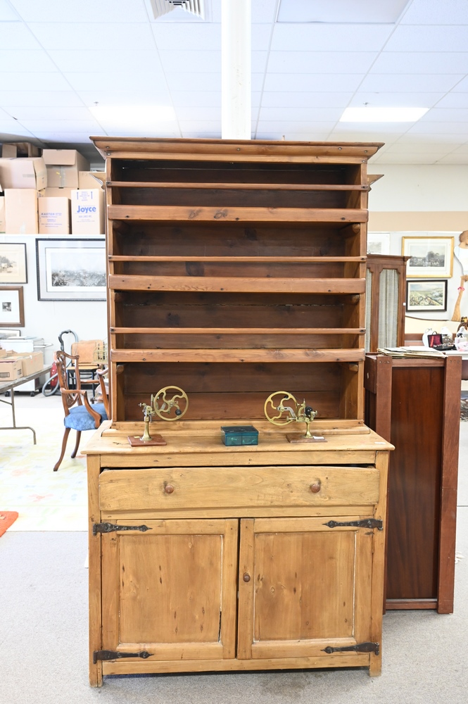 Lot 152: Early Stepback Cupboard, in two parts, late 18th/early 19th century, height 80 1/2 inches, width 45 1/2 inches.
