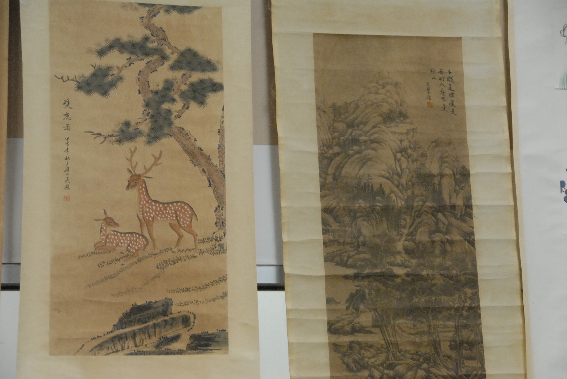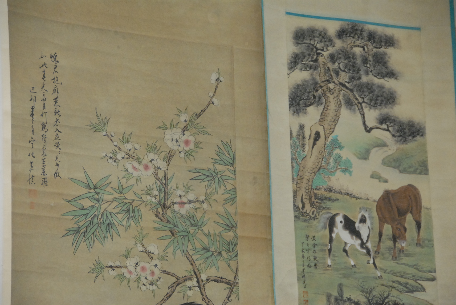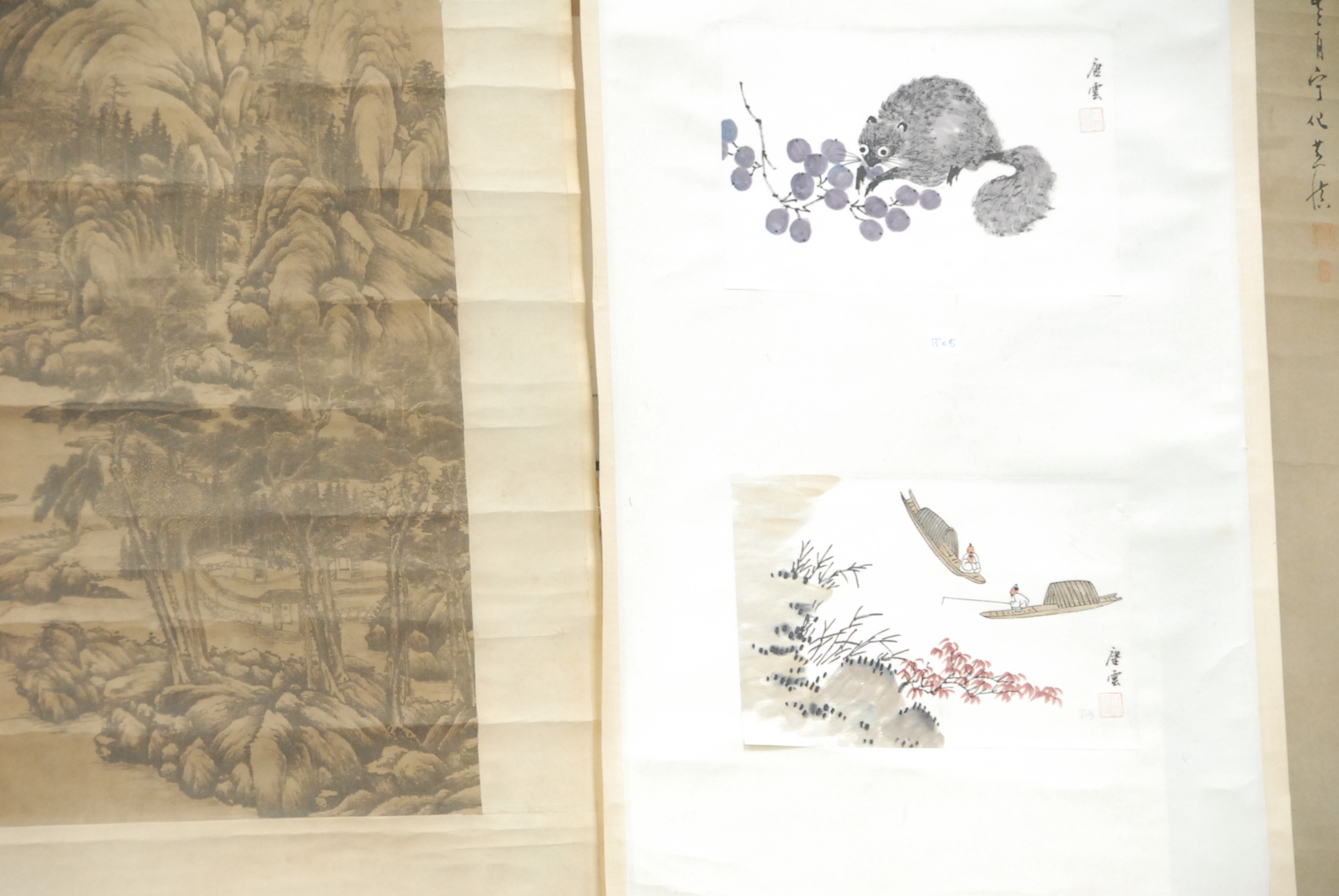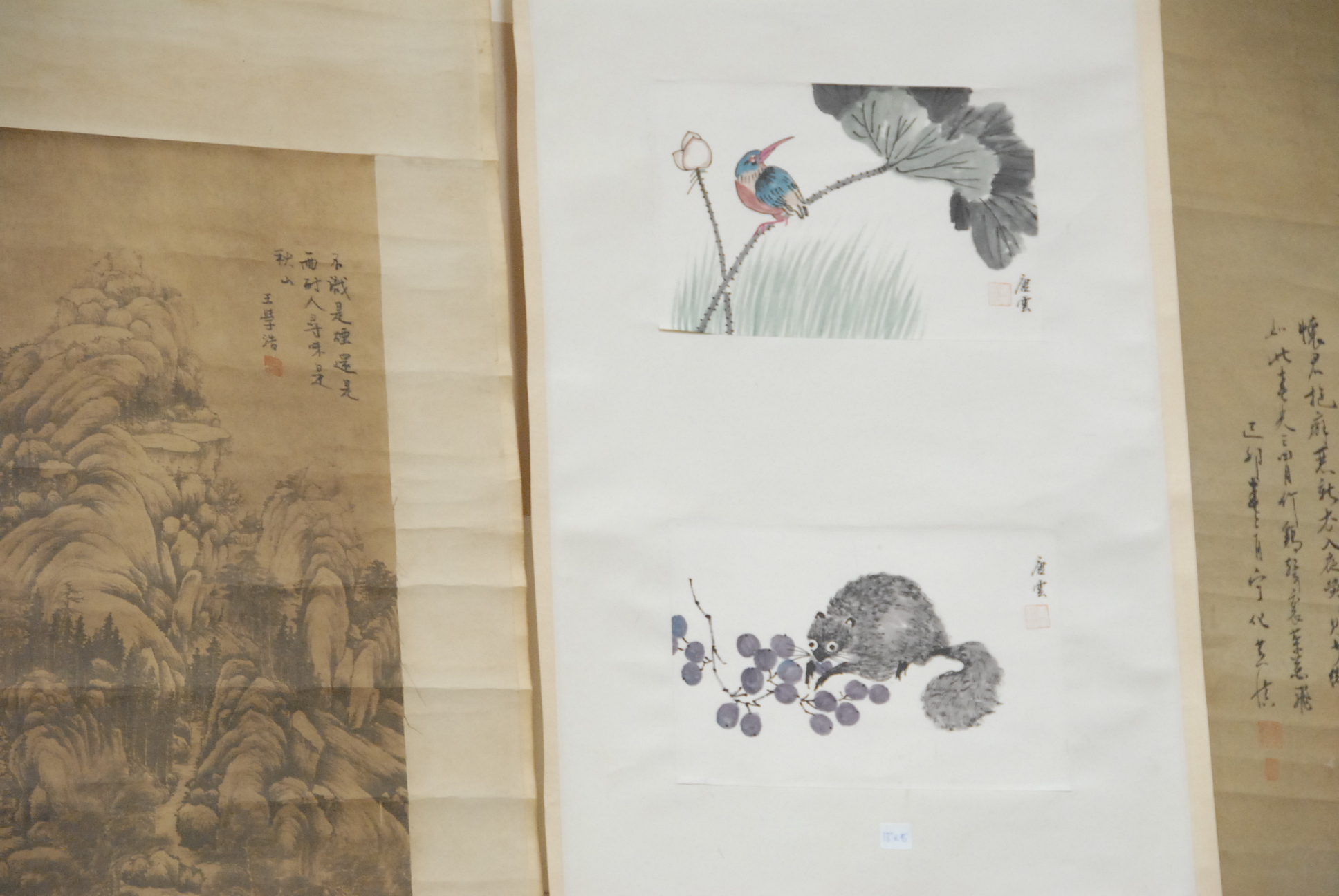Five Chinese scroll paintings.