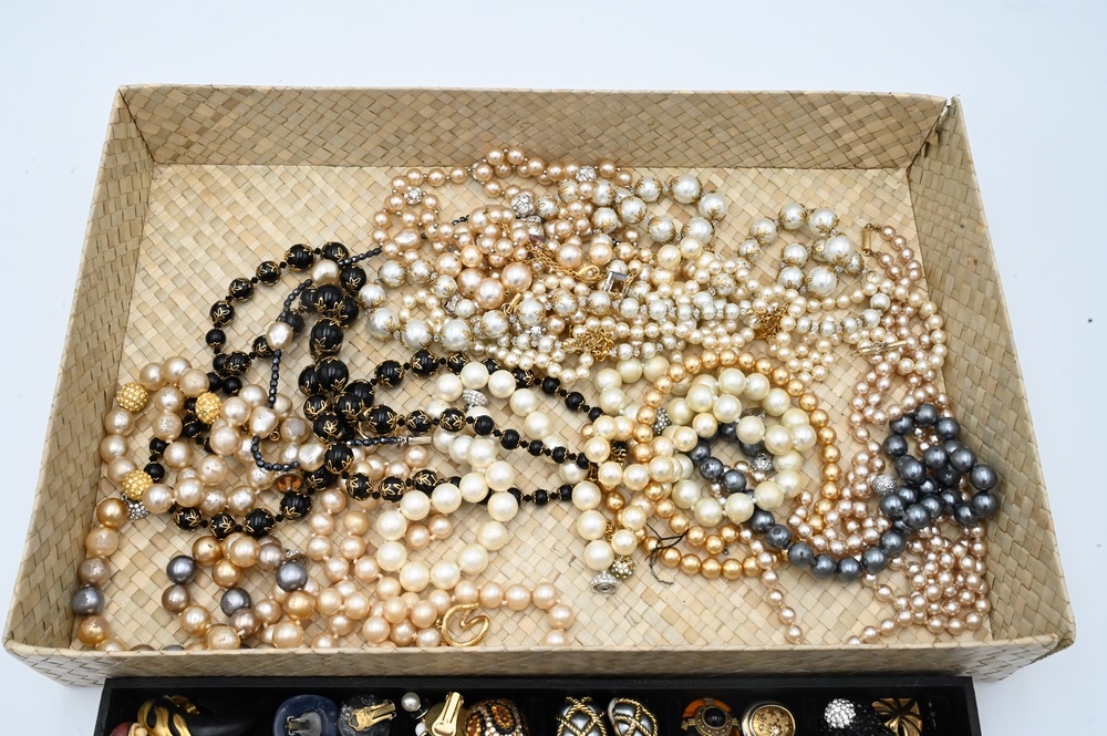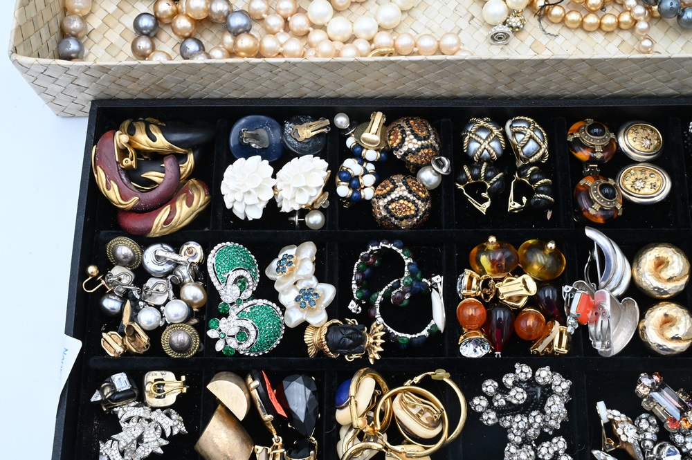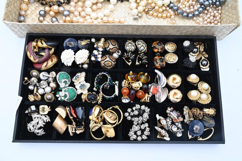 Large Group of Costume Jewelry, to include Christian Dior, Kenneth Lane earrings, necklaces, faux pearl necklaces, etc.