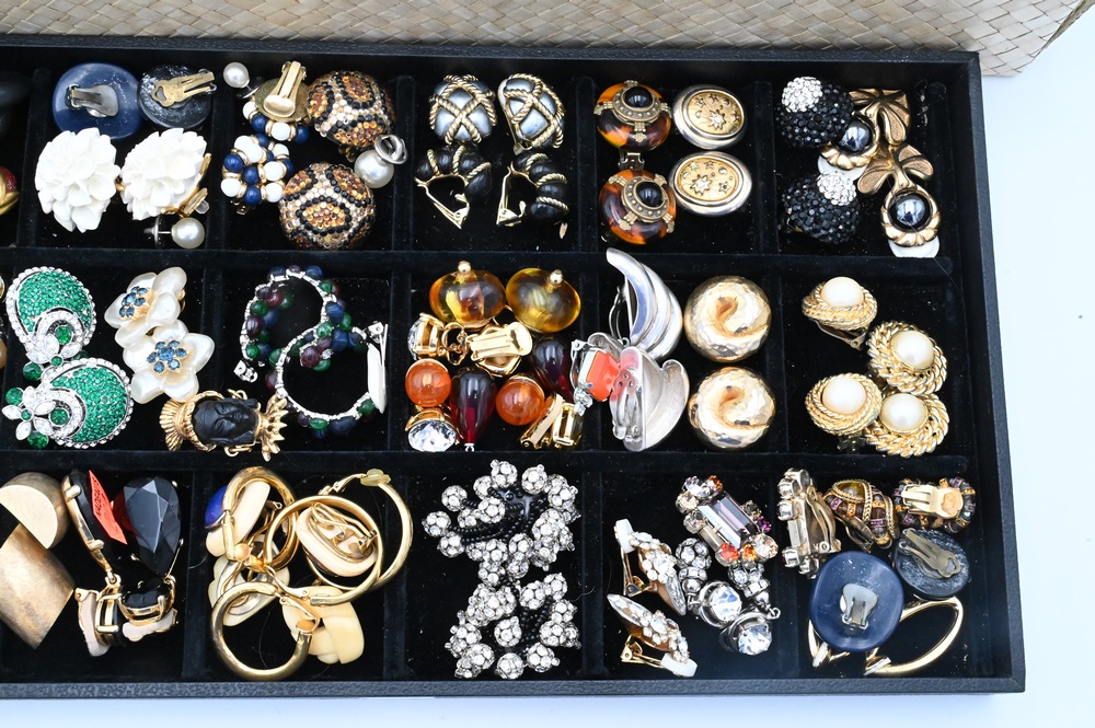 Lot 152: Large Group of Costume Jewelry, to include Christian Dior, Kenneth Lane earrings, necklaces, faux pearl necklaces, etc.
