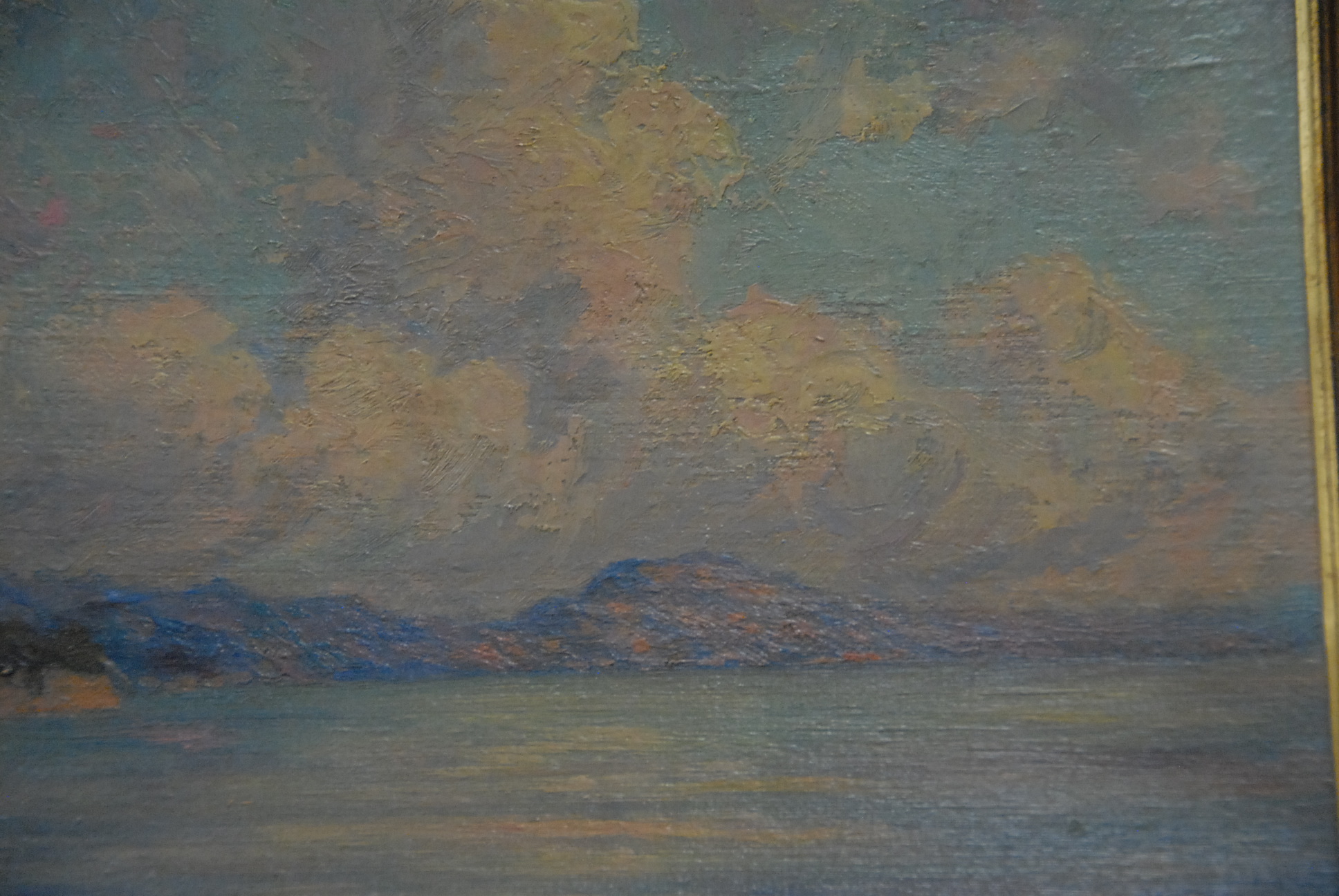 Paul Harvey American 1878-1948 CALIFORNIA LANDSCAPE oil on canvas board unsigned written on back: By Paul Harvey in Newcomb Macklin frame having part of original Newcomb Macklin label 12 x 14 3/4