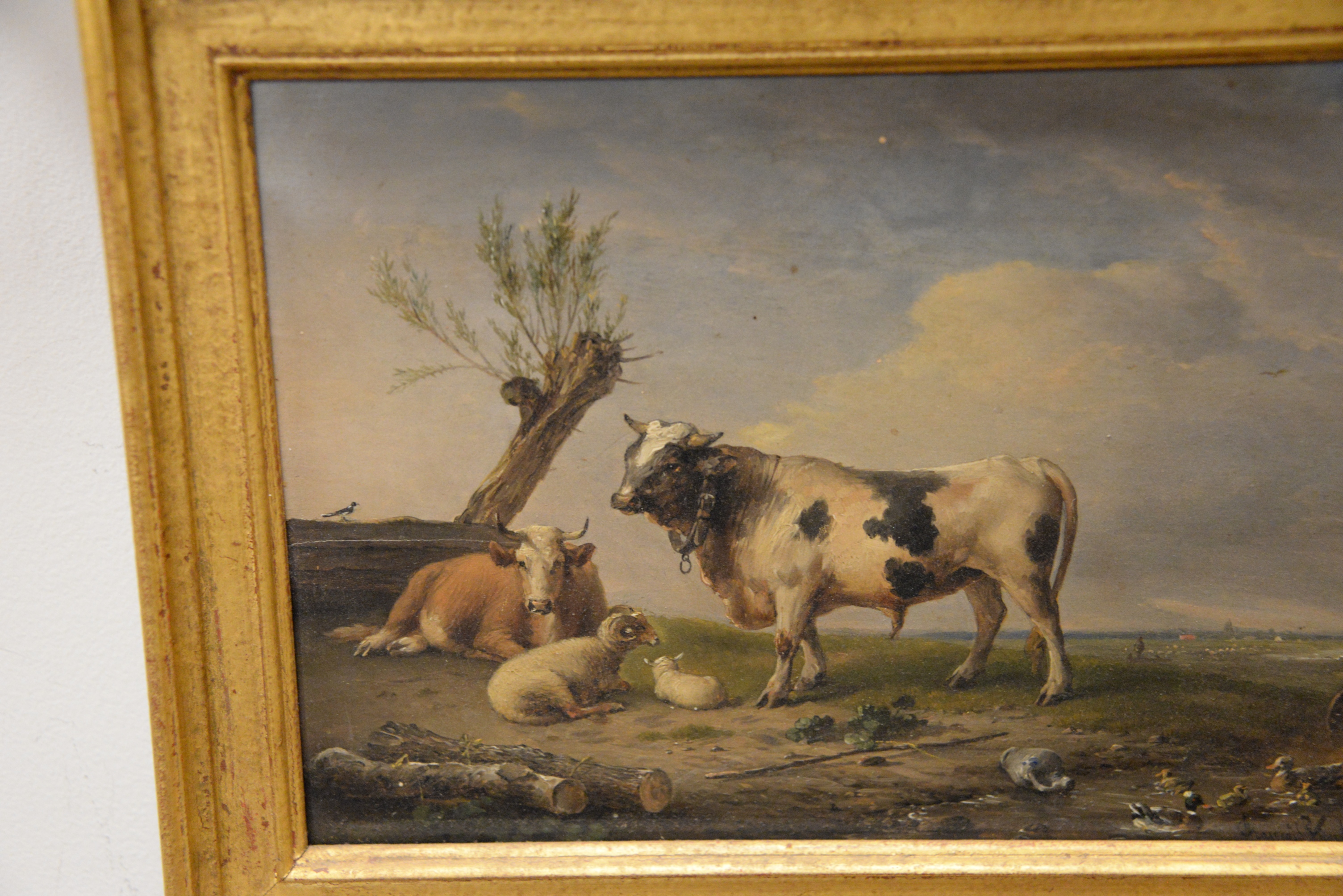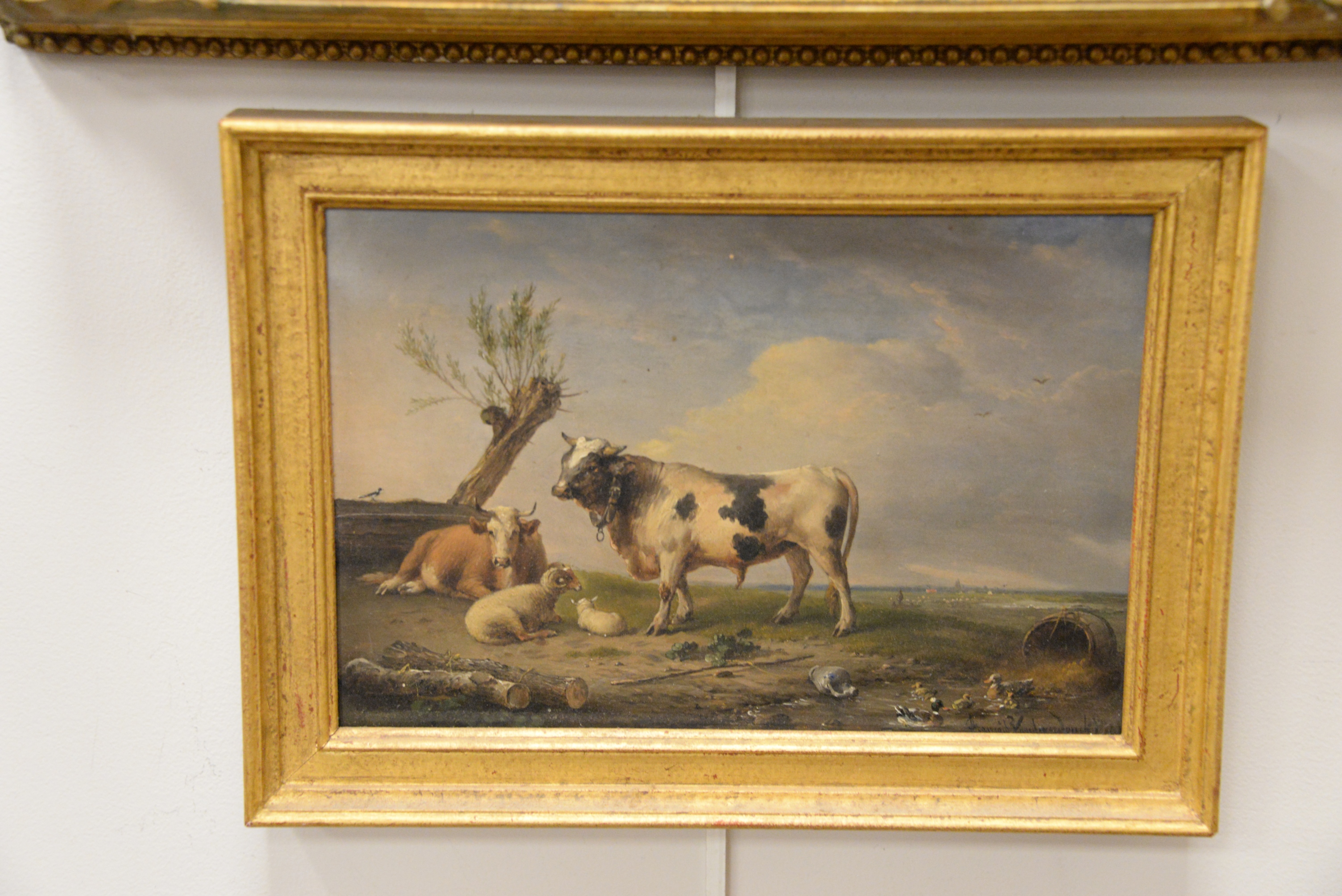 oils on board, “Bull, Cow, Sheep, and Countryside”, 1881