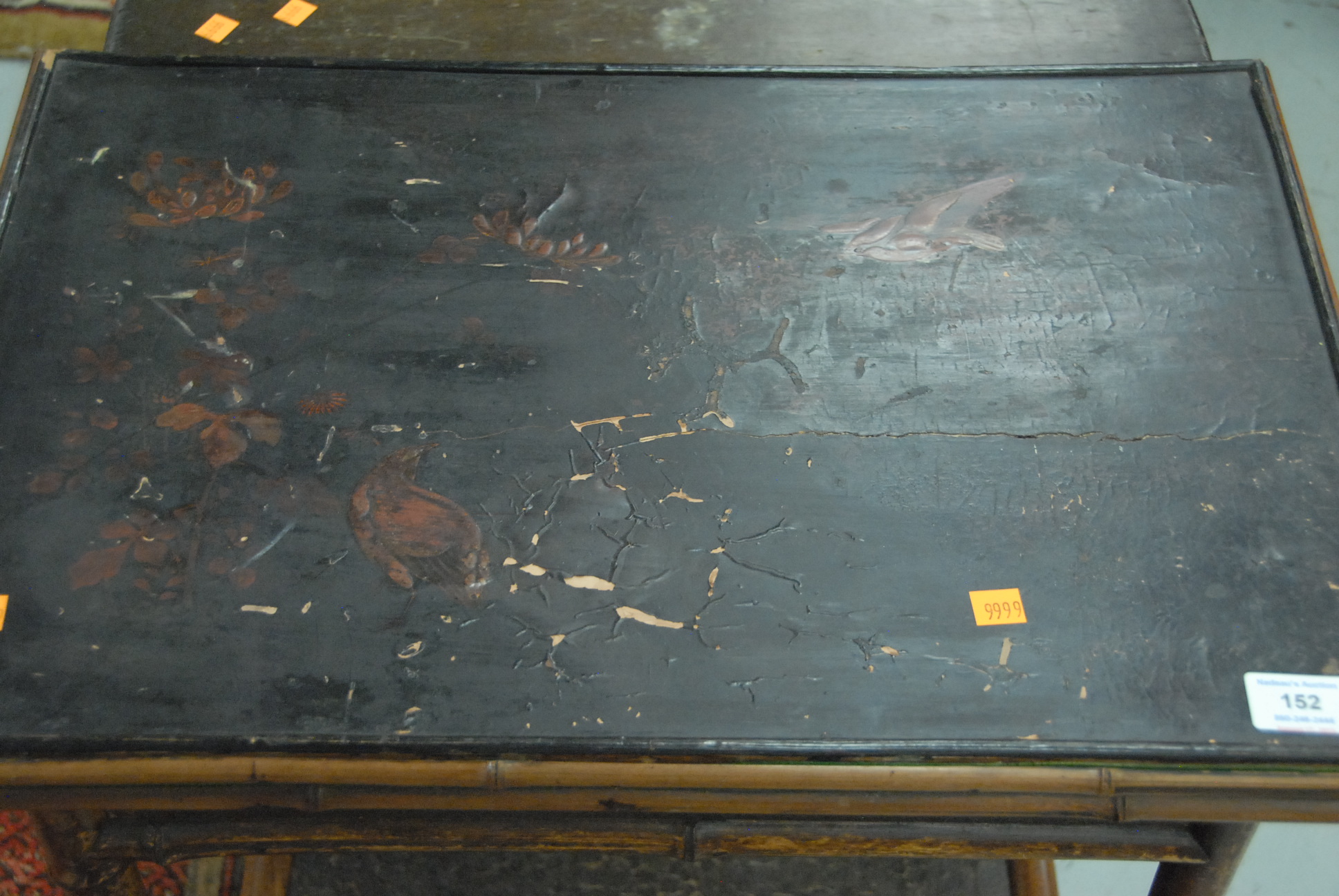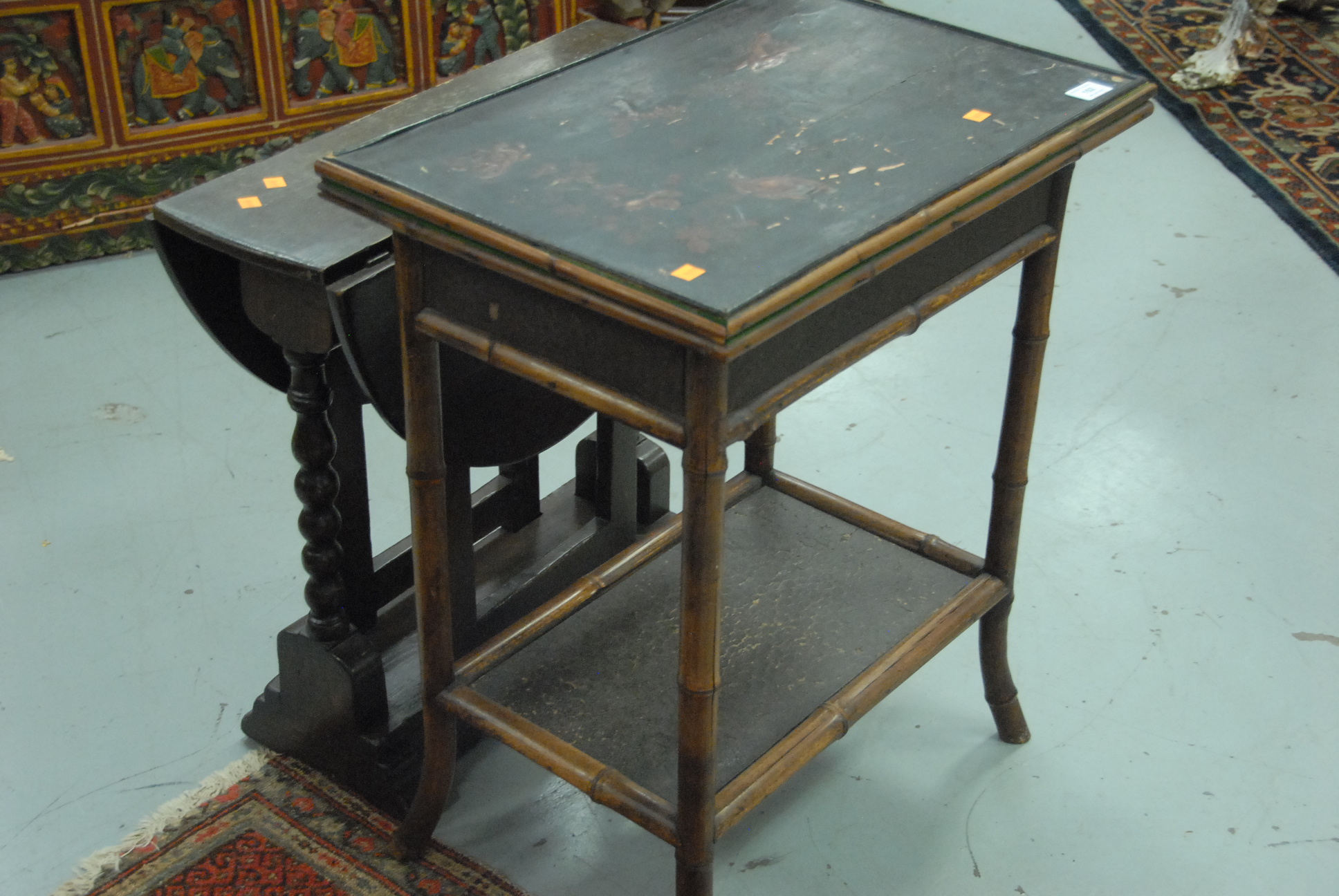 Two piece lot to include oak drop leaf table and bamboo game table.