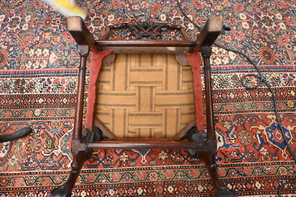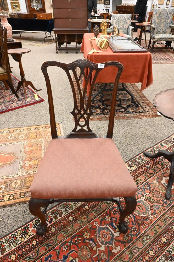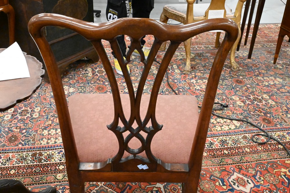 Lot 153: Chippendale Mahogany Side Chair, having pierced carved back, carved crest rail set on carved cabriole legs, ending in ball and claw feet, possibly Mayland, circa 1760, Mabel Brady Garvan Collection, “WS,” stamped, on interior of rear rail, height 37 inches, seat 16″. Provenance: Barton Brothers, Centerville, Maryland; sold to Francis P. Garvan (1875–1937), New York; gift to Yale University Art Gallery, New Haven, Conn., 1930.