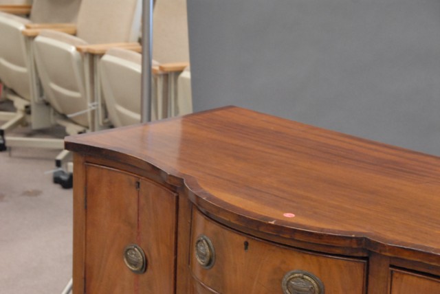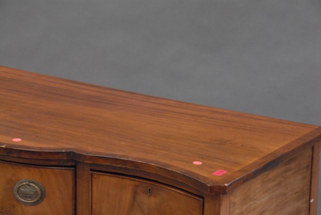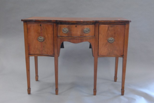 Diminutive Federal style mahogany sideboard with 3 drawers, and banded inlaid top.