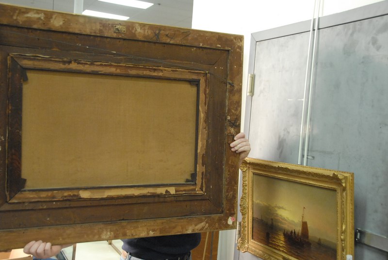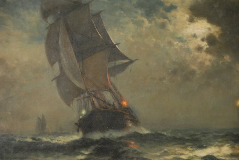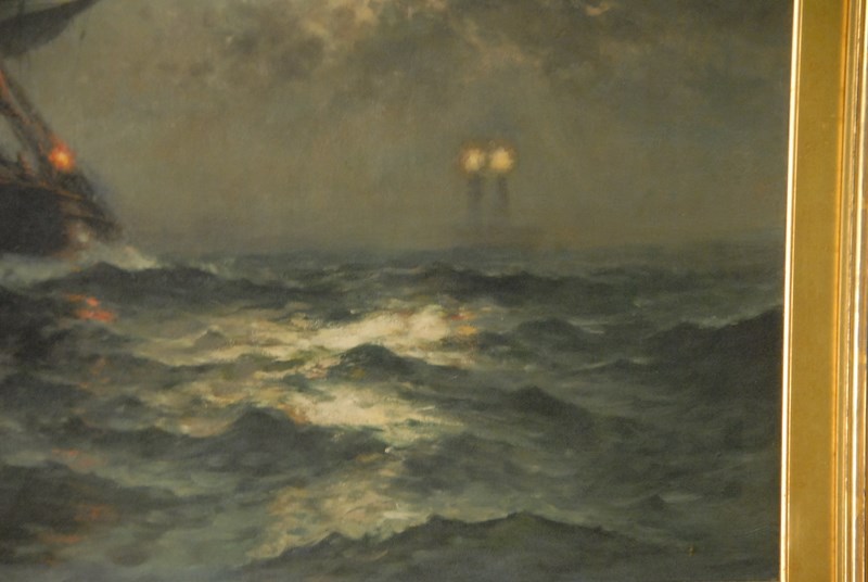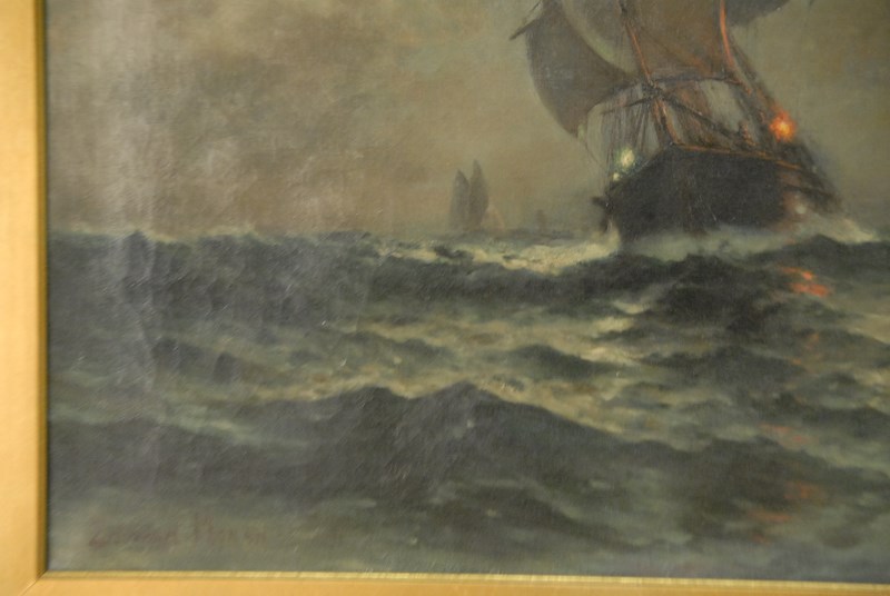 Lot 153: Edward Moran 1829-1901 SAILING IN THE MOONLITE oil on canvas signed lower left Edward Moran in Victorian original gilt frame 20 x 30