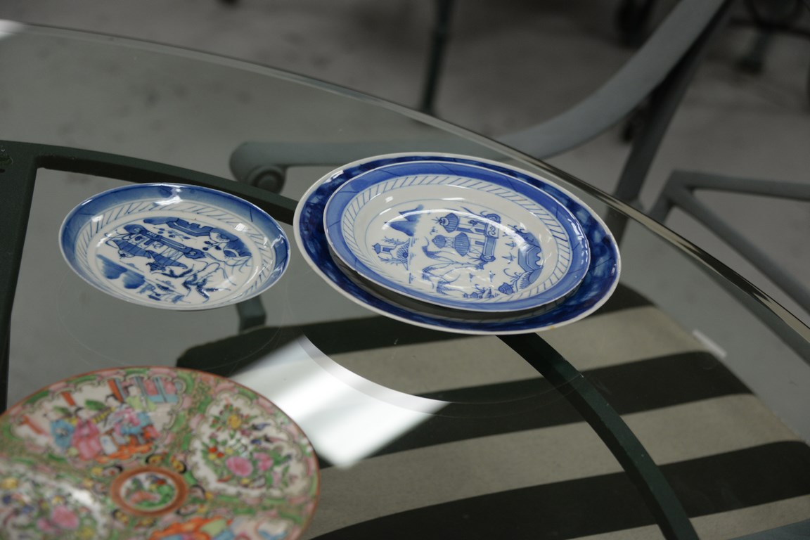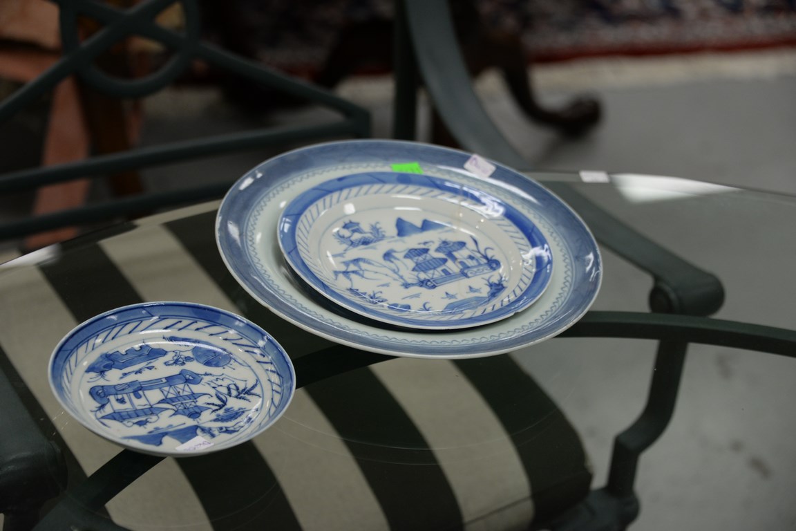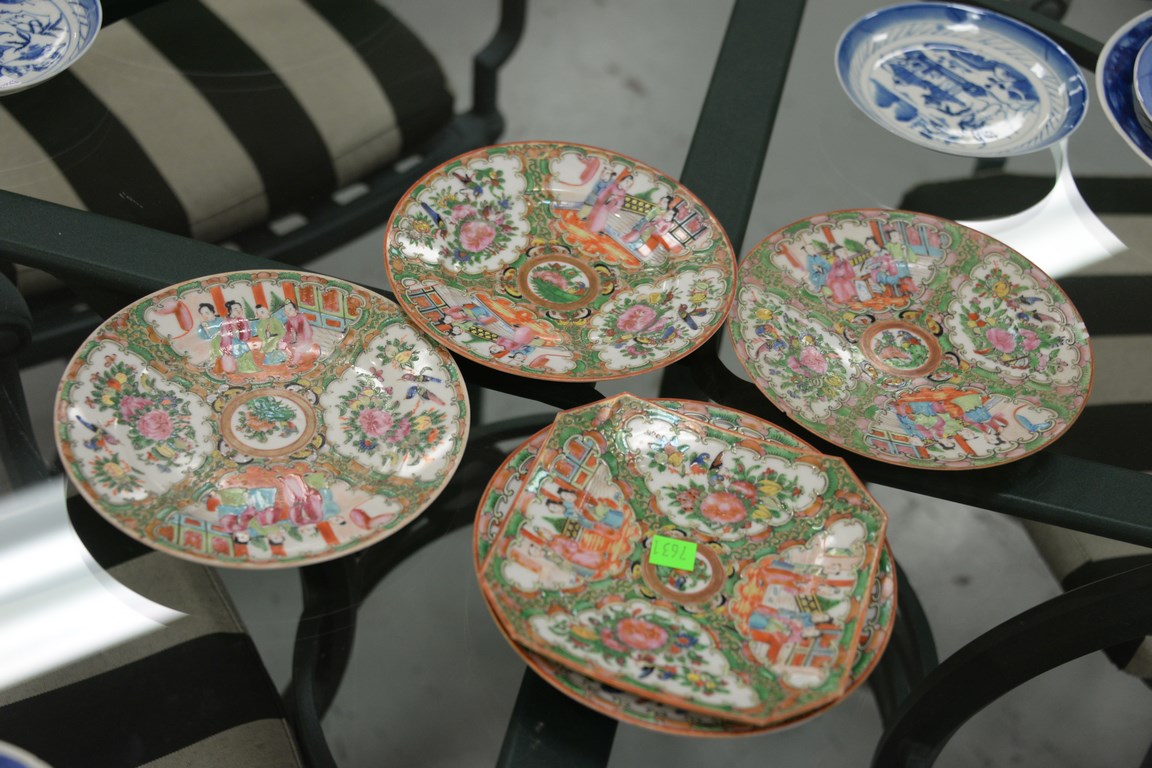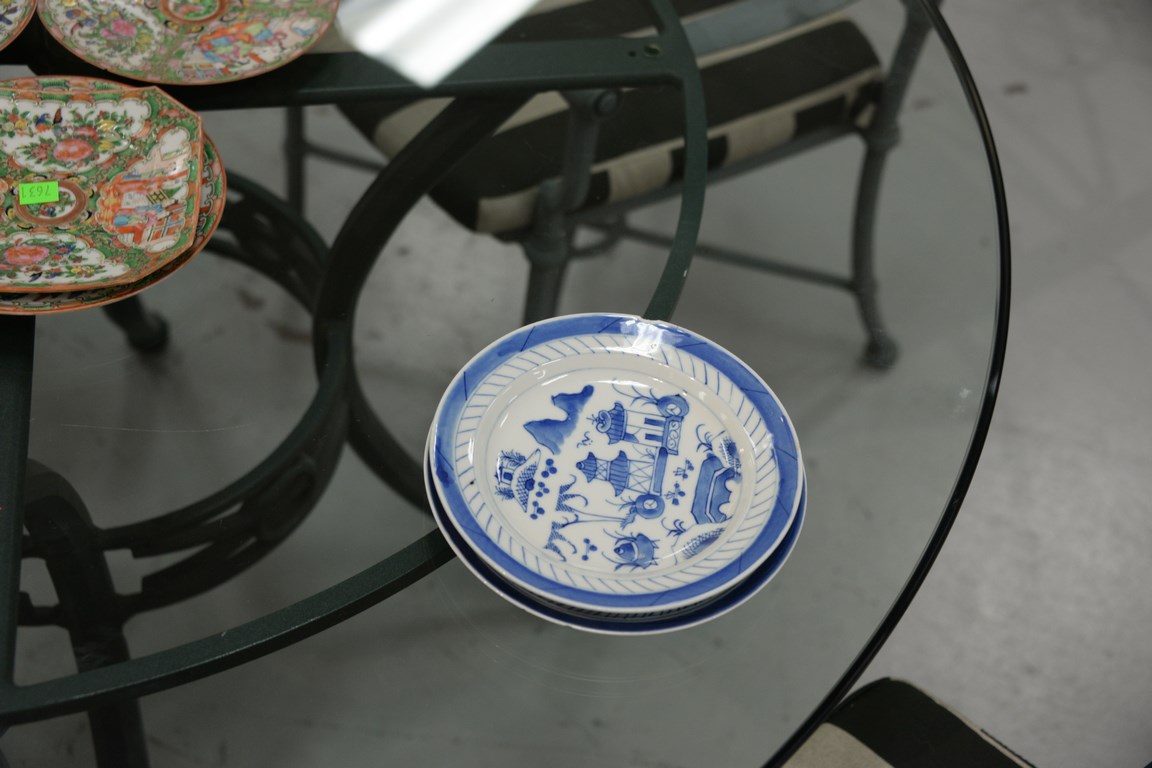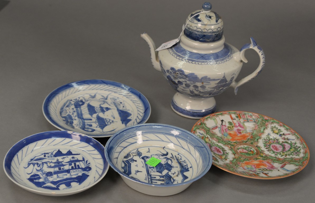 Lot 153: Group lot Canton and Rose Medallion plates including 1 Canton teapot, 3 Canton plates, and 6 Rose Medallion.