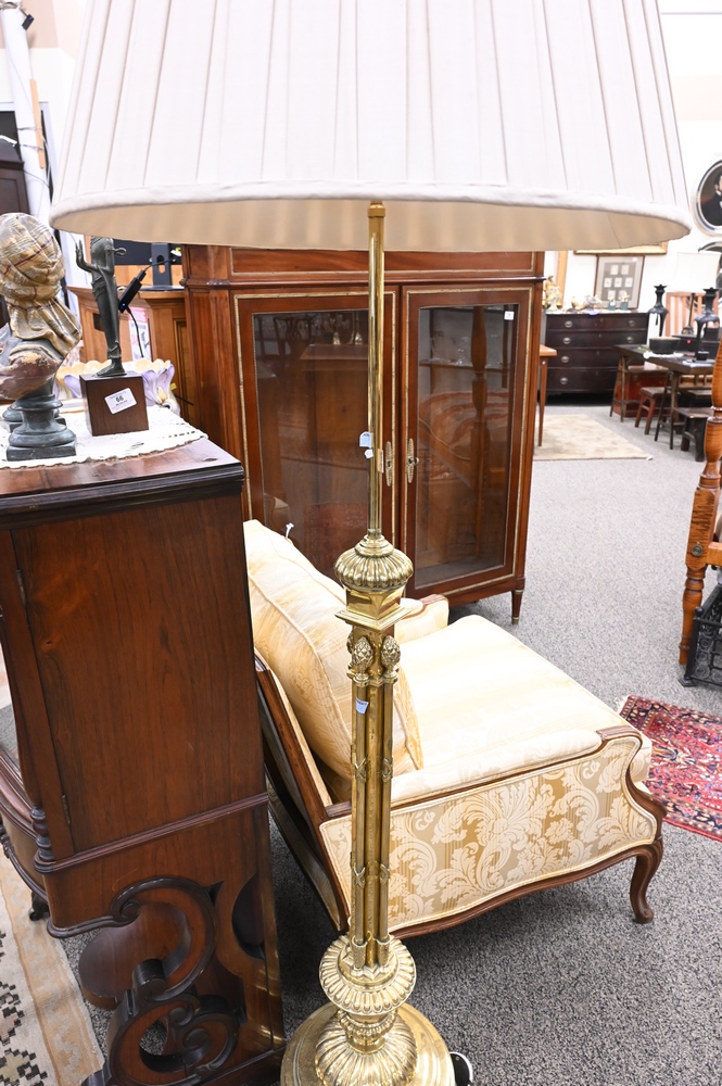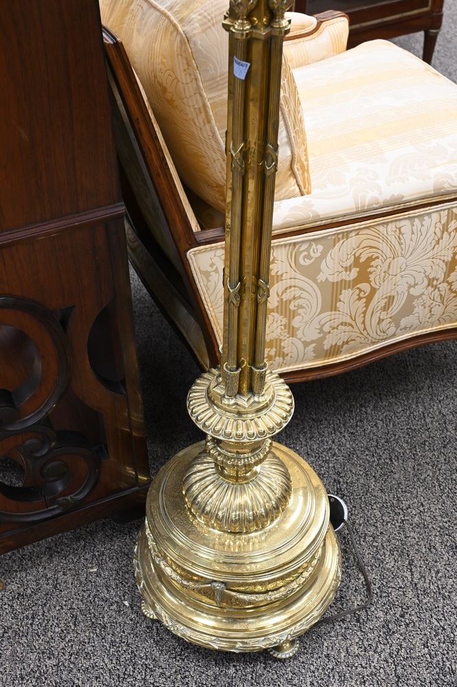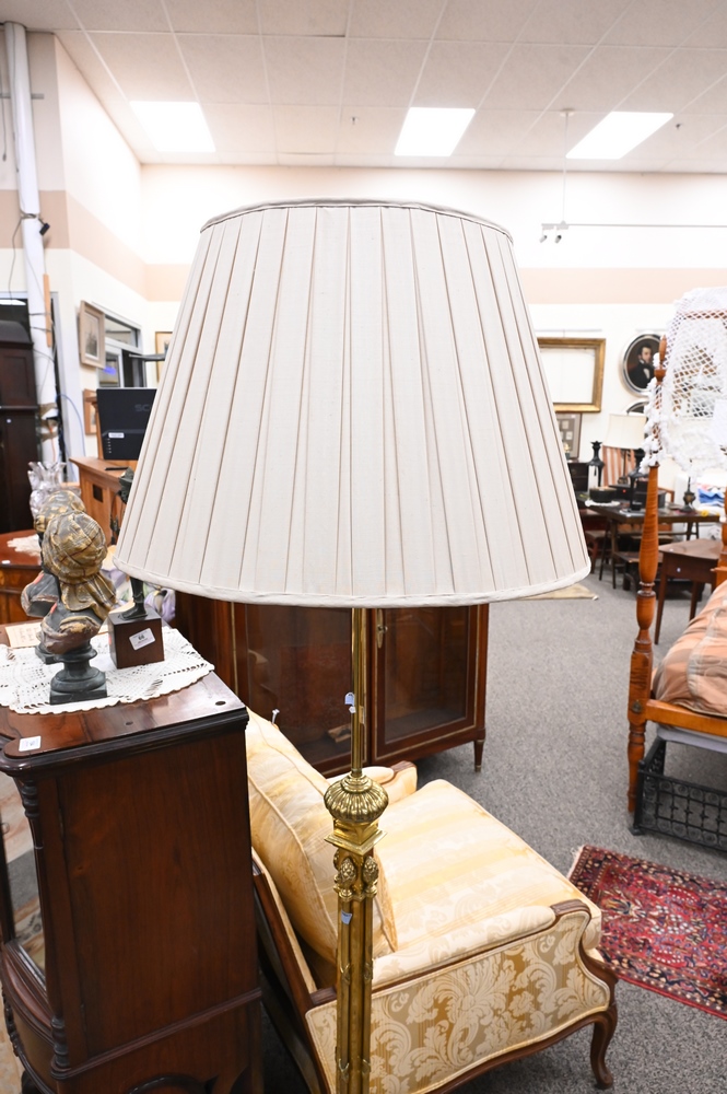 Large Brass Floor Lamp, having round brass base with column form shaft, height 71 inches.