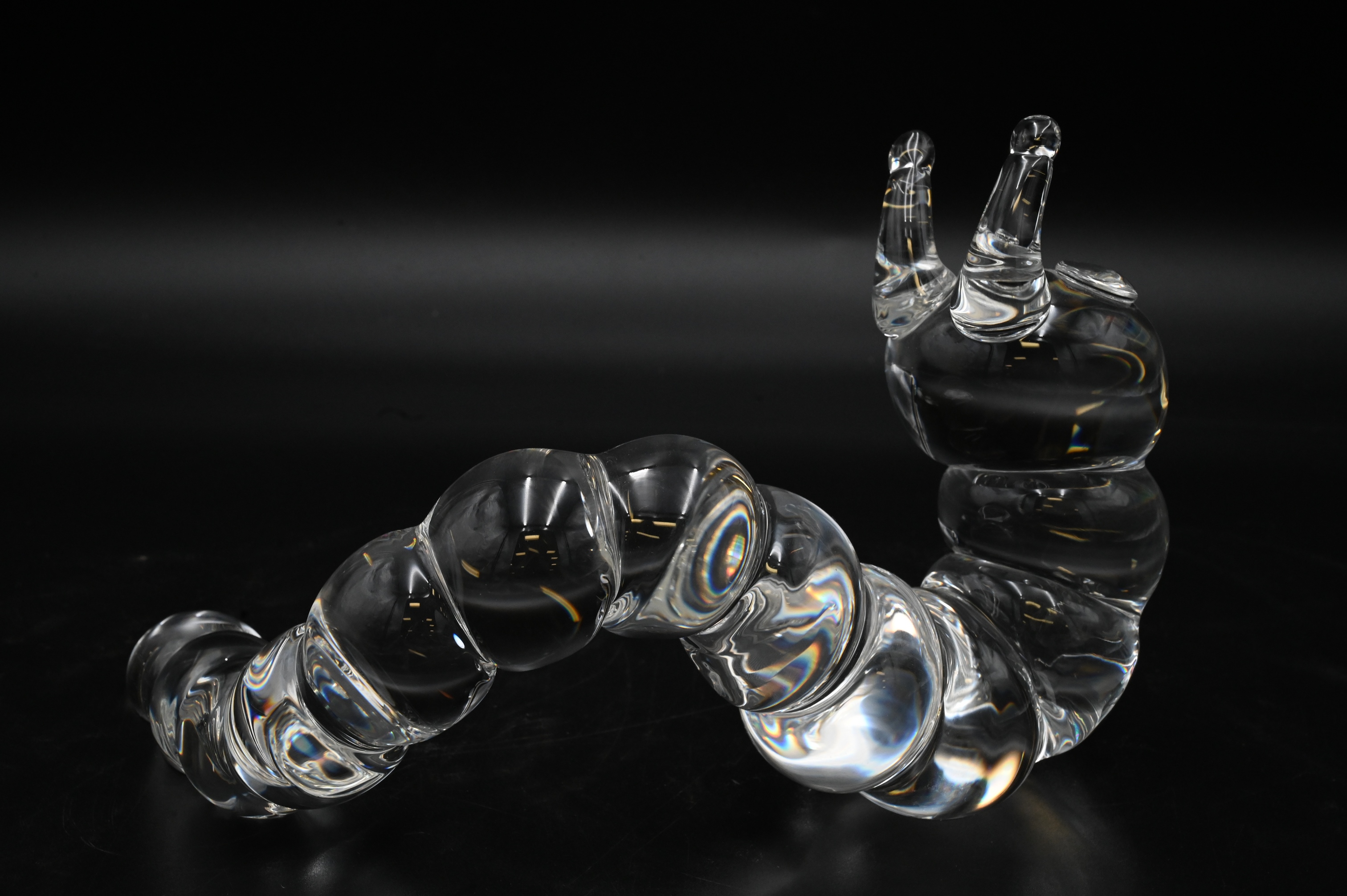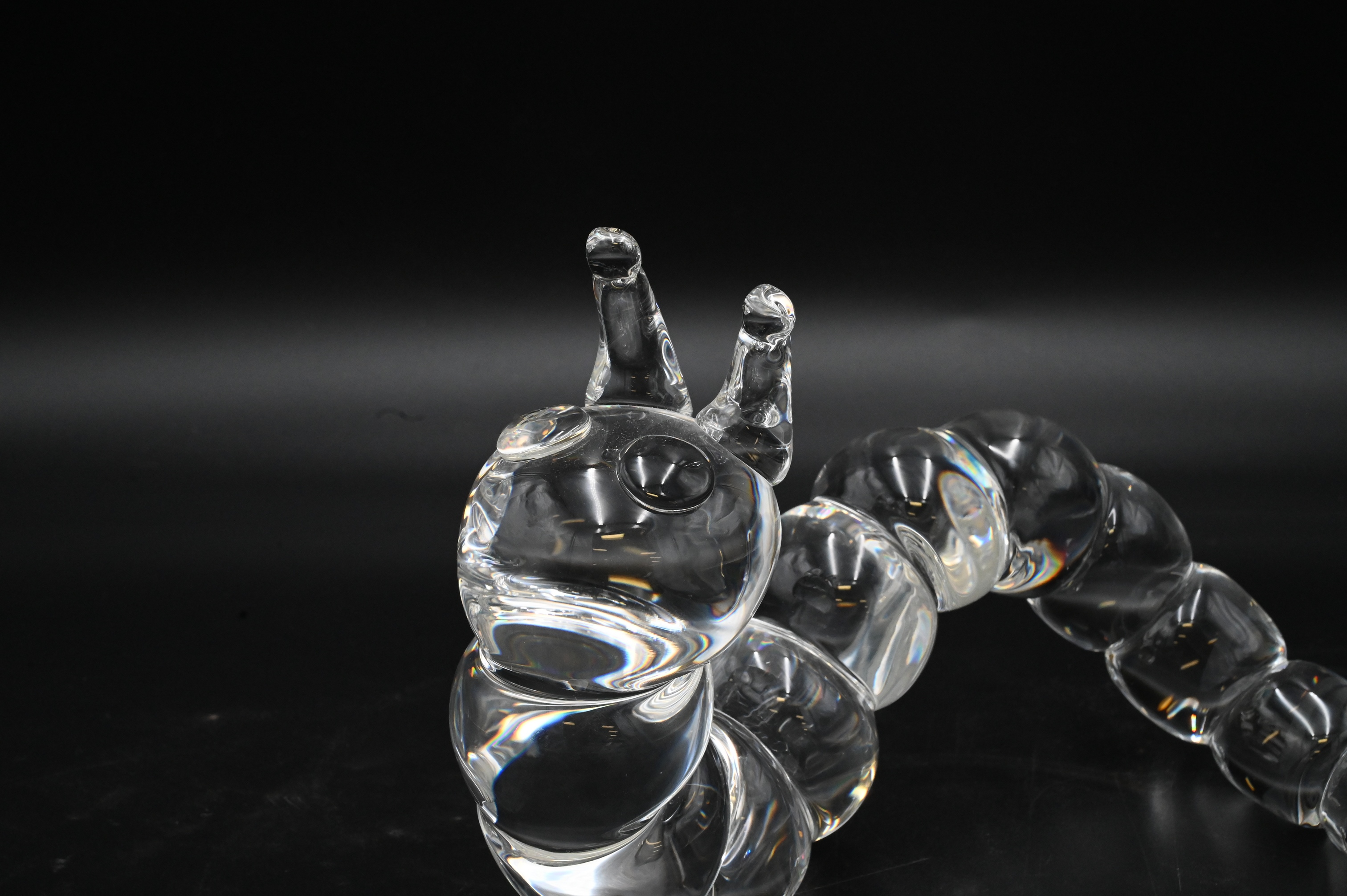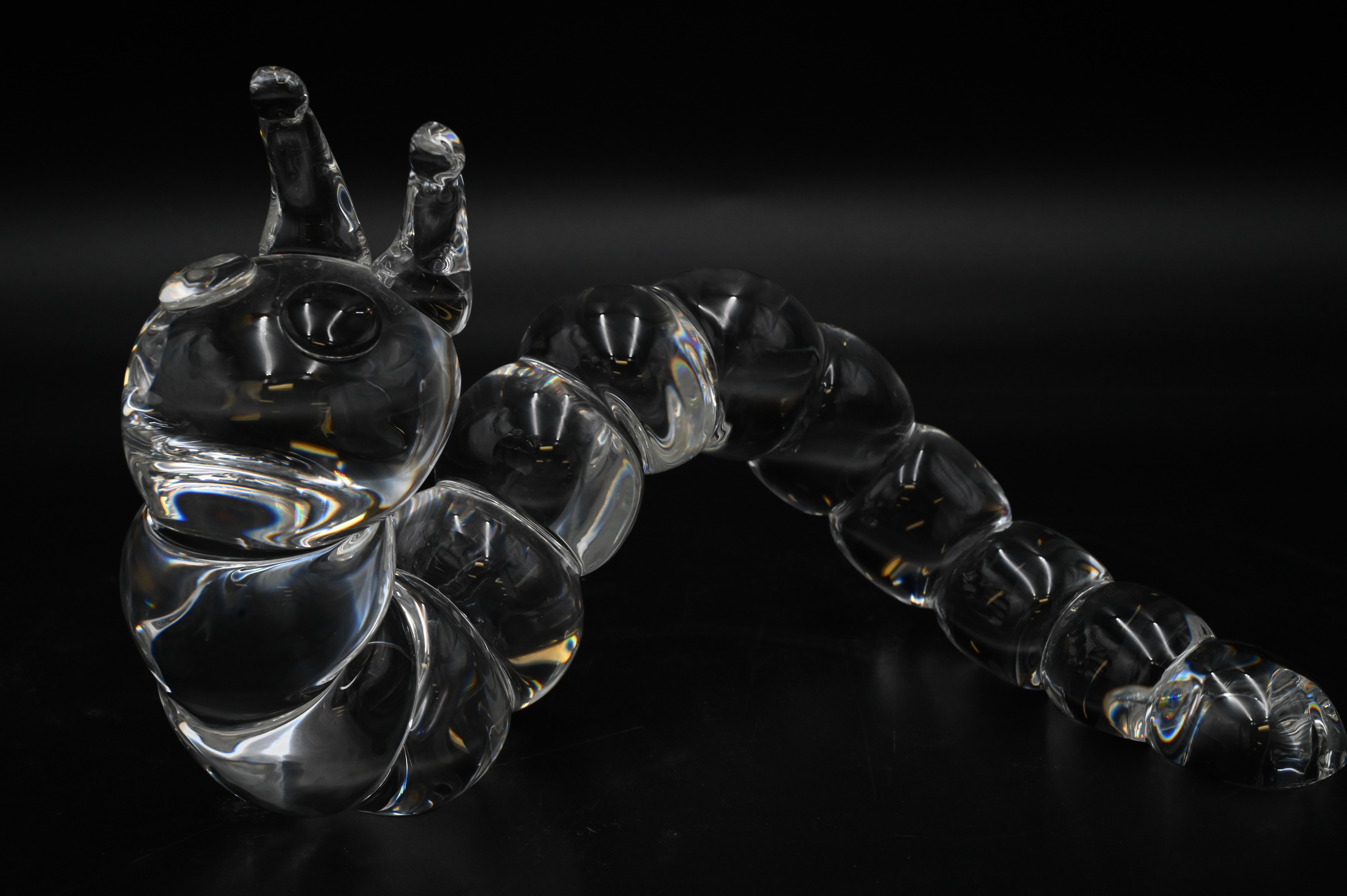 Large Crystal Steuben Caterpillar, signed Steuben on bottom, height 6 3/4 inches, length 11 inches. Provenance: Property from a private New York collection sold to benefit charitable foundations.