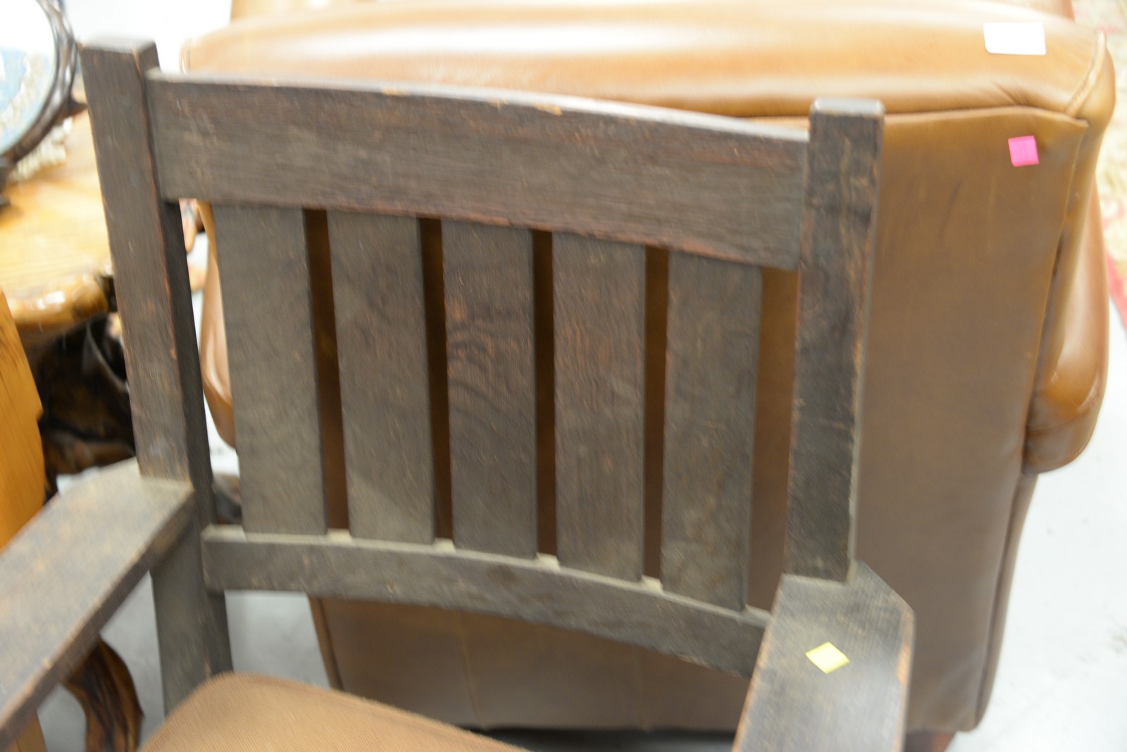 Mission oak armchair.