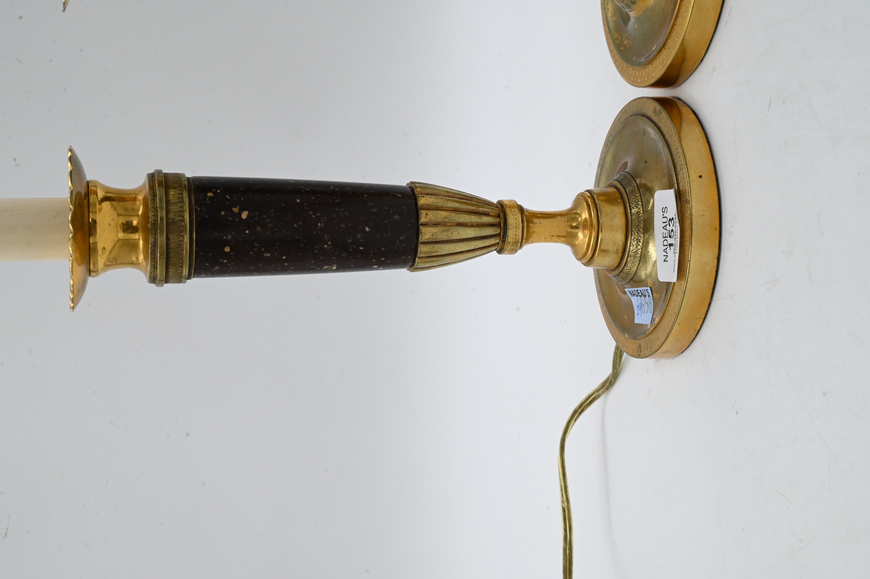 Lot 153: Pair of Empire Porphyry and Gilt Bronze Candlesticks