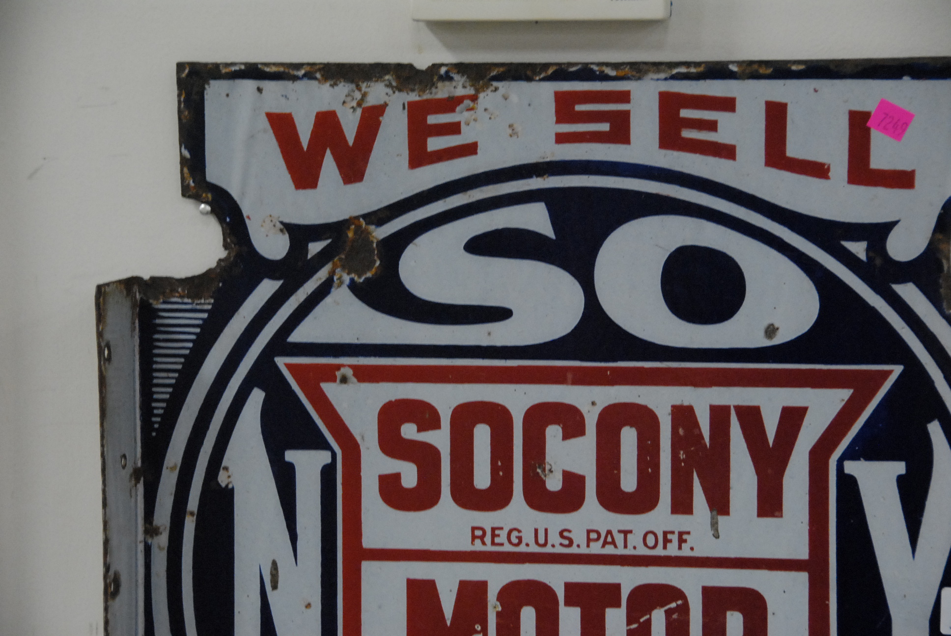 Lot 153: Porcelain two sided sign Socony Motor Gasoline, 24 x 20.