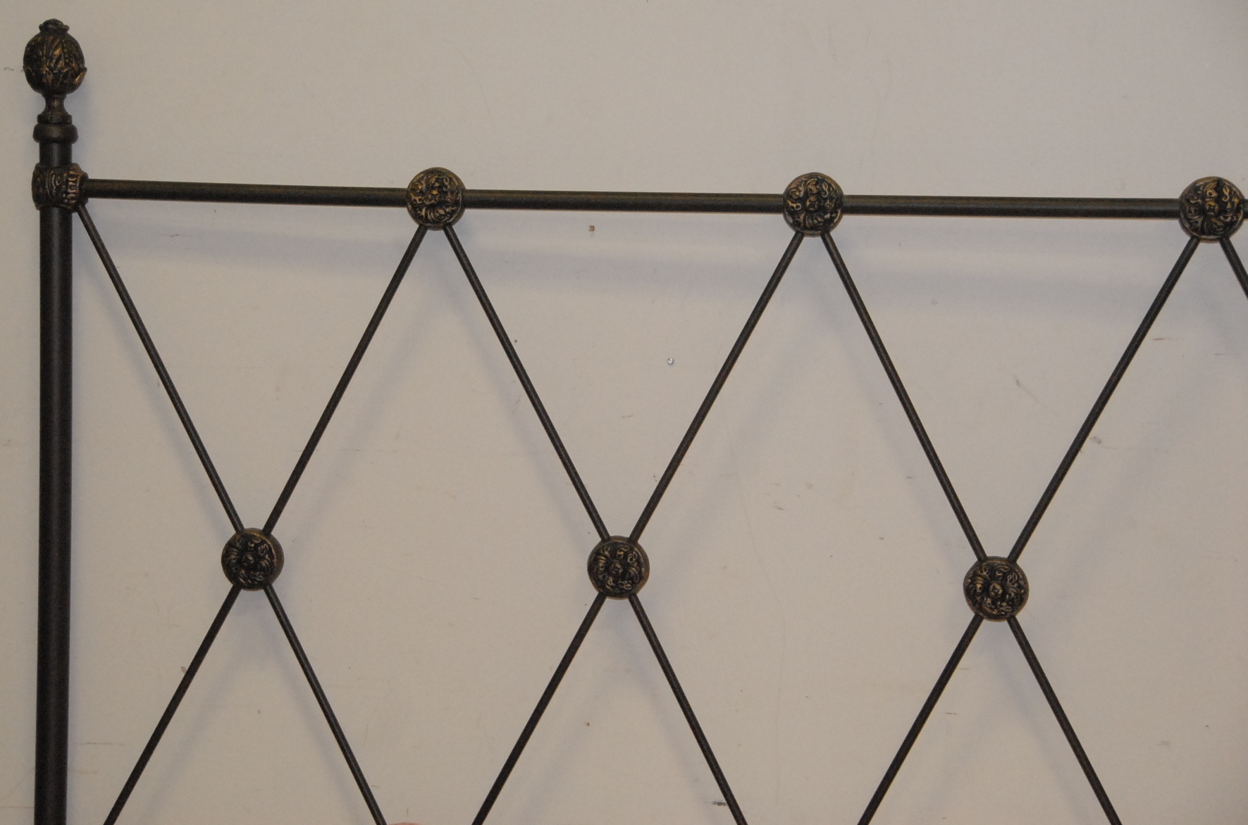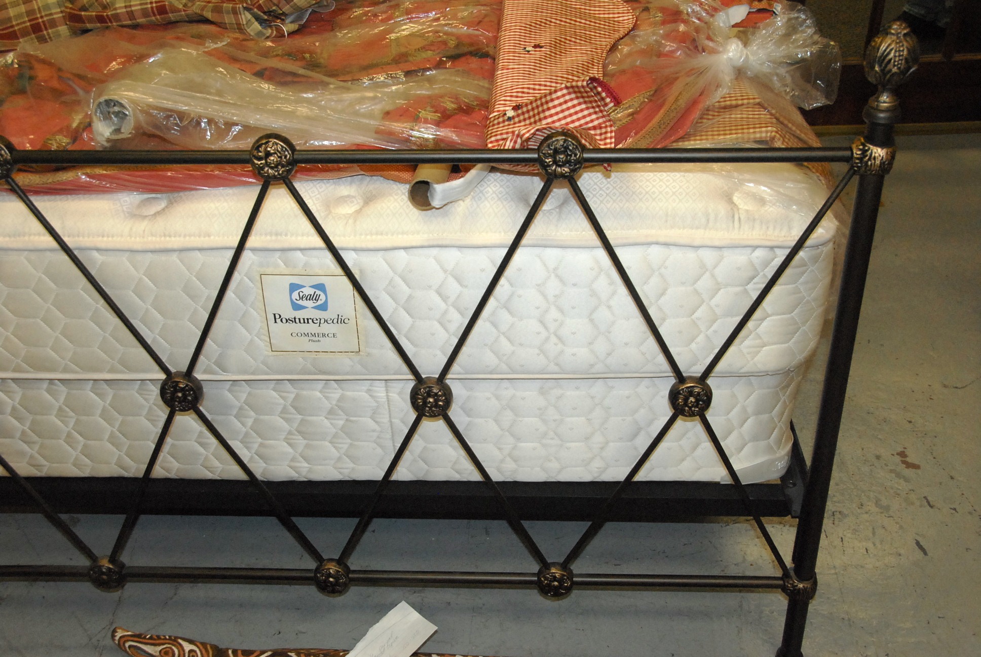 Lot 153: Queen size iron bed, complete, bed signed Gabrielle 2002 along with Sealy Posturepedic mattress in excellent condition.