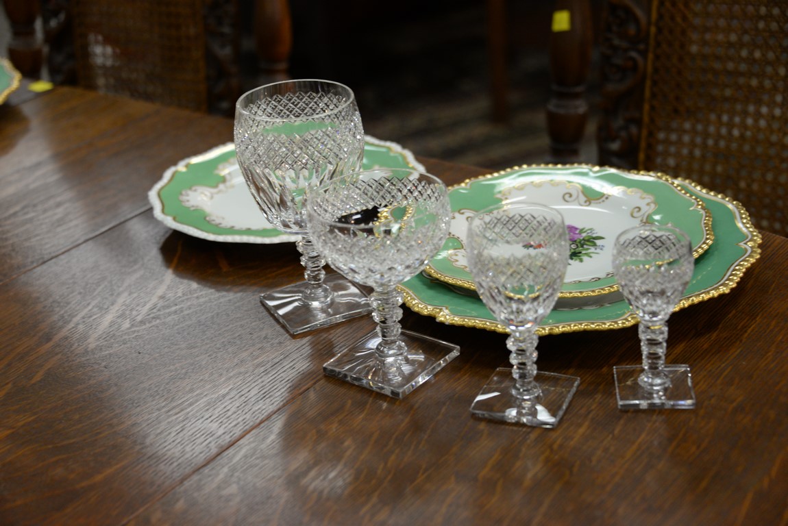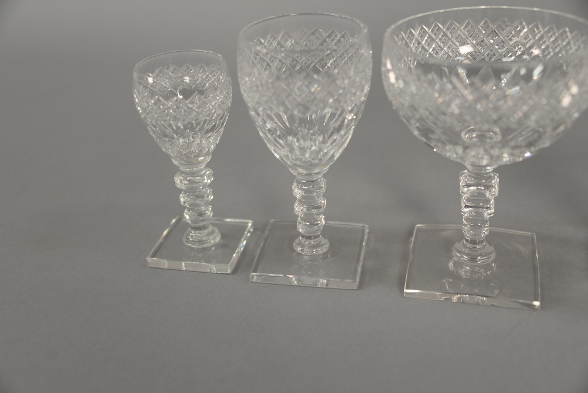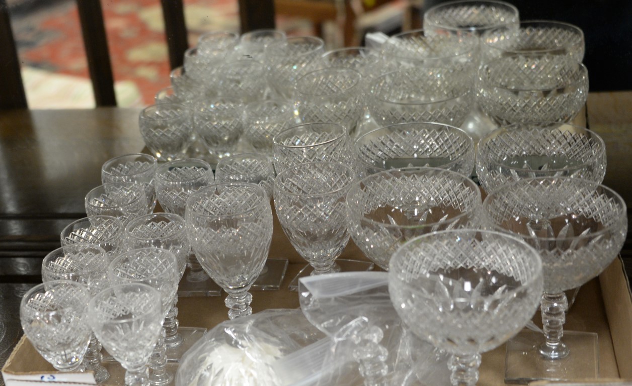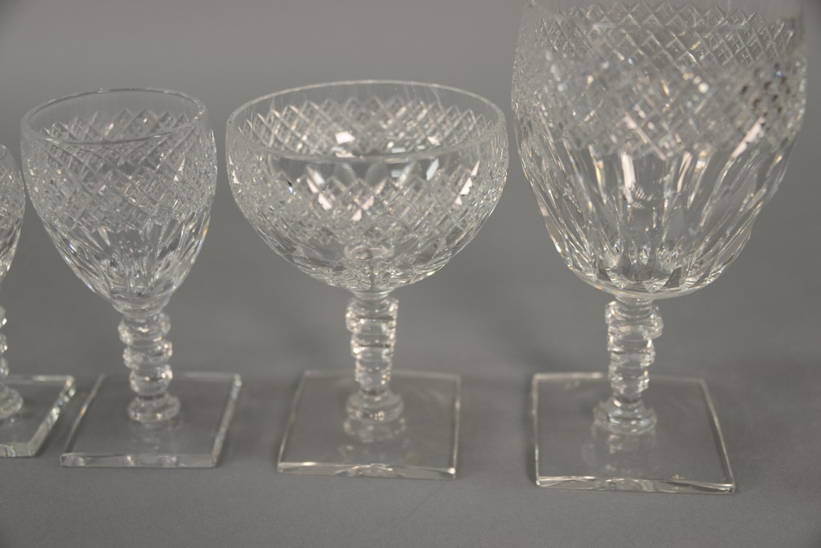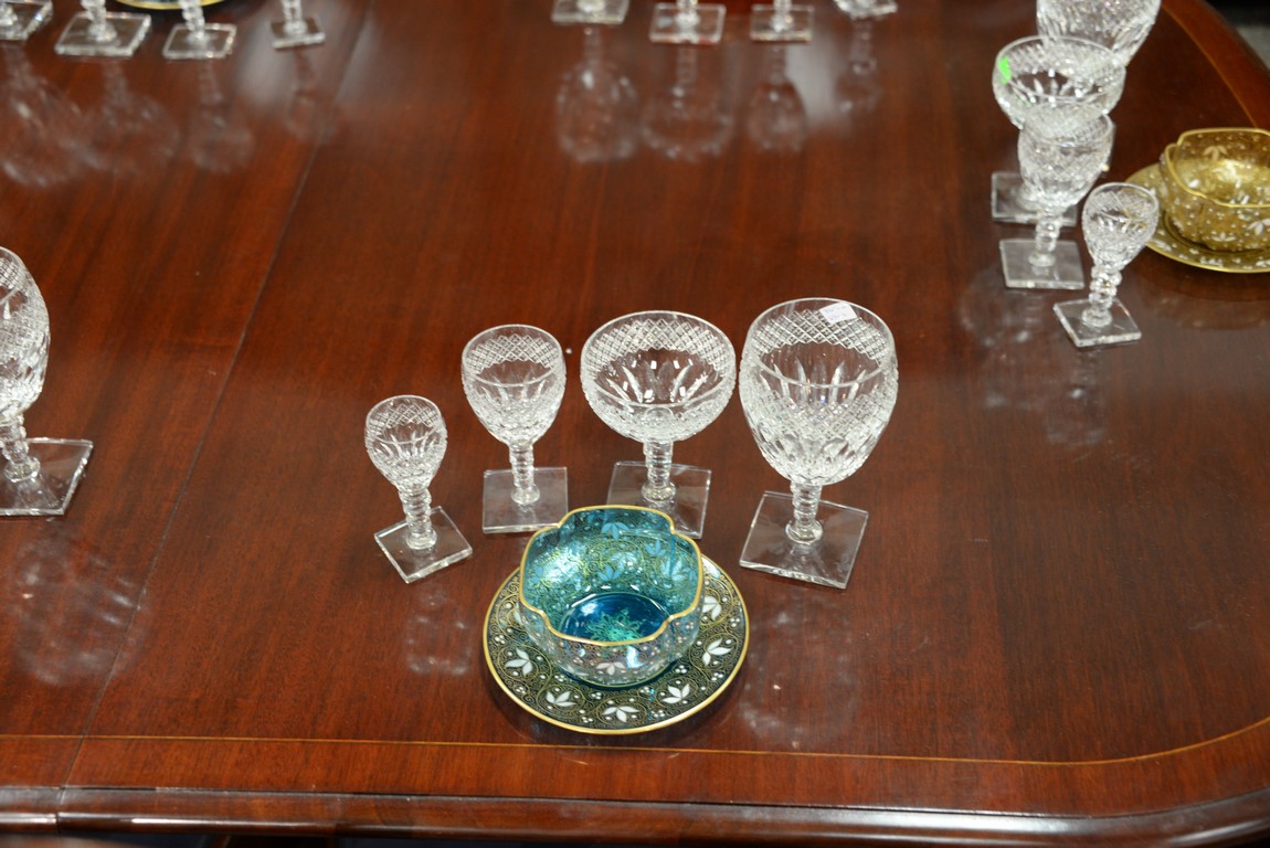 Lot 153: Seventy-eight piece set of Hawks crystal stems, Donisel pattern including 24 red wine, 17 white wine, 15 cordial glasses, and …