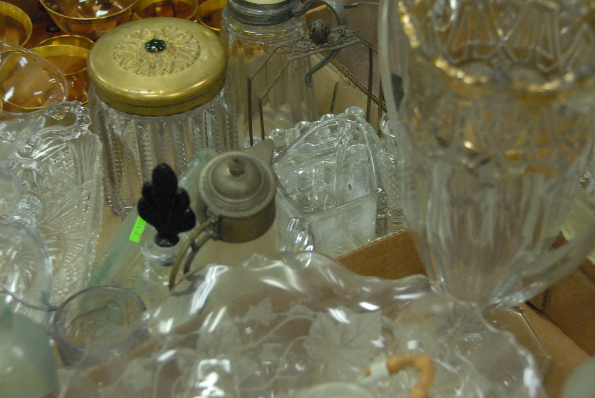 Six box lots to include set of gold rimmed stems, bowl, serving pieces, vases, etc.