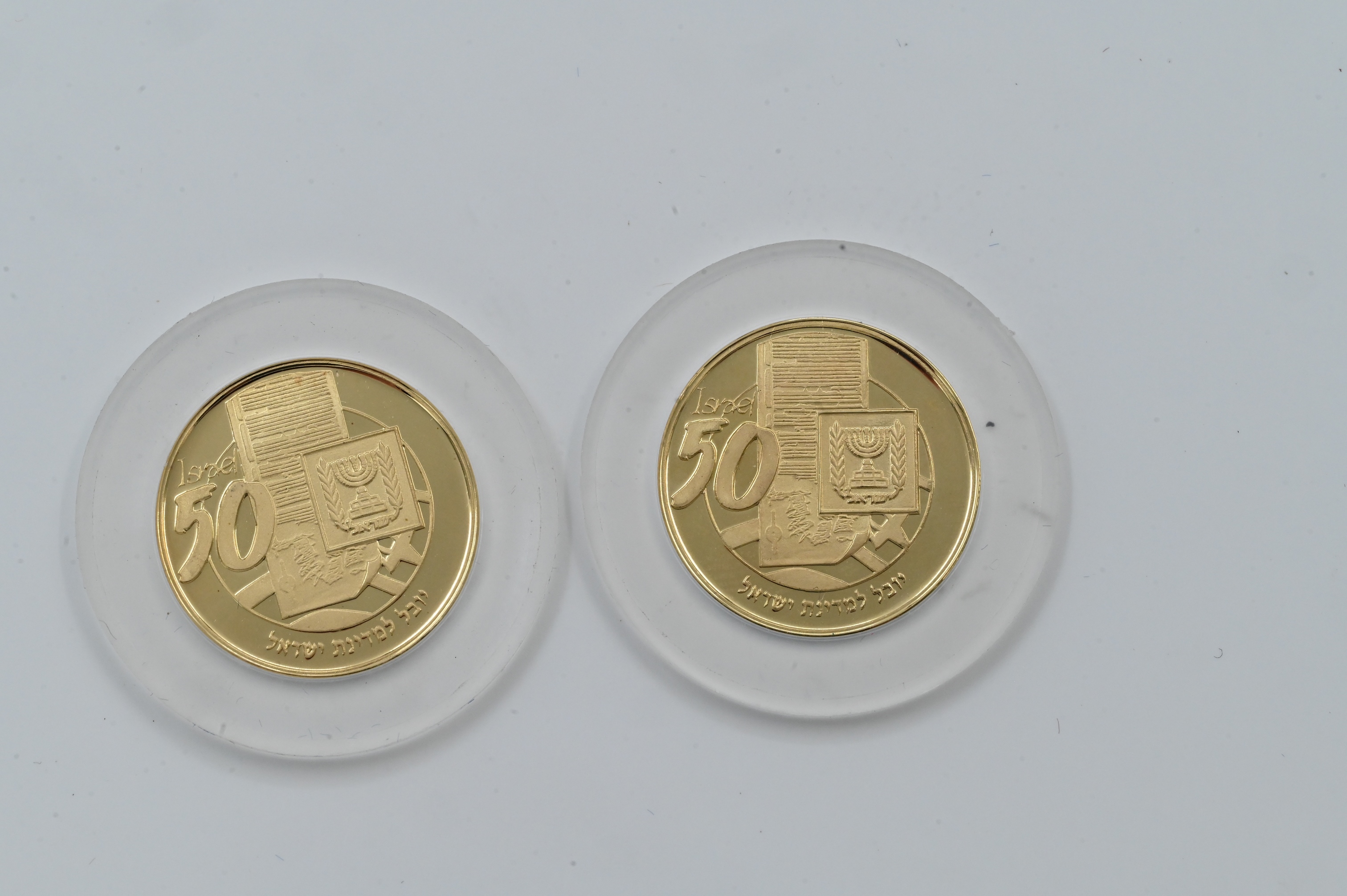 Lot 153: Two 18k Gold Presidents of Israel Series Medals