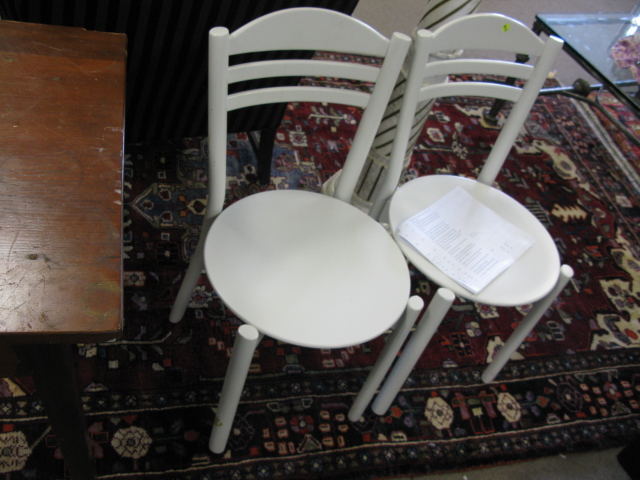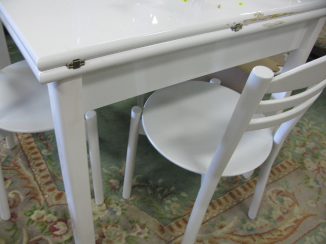 Calligaris Italian white enameled seven piece dining set with table and six chairs.