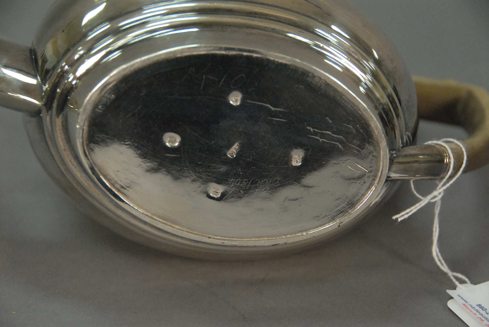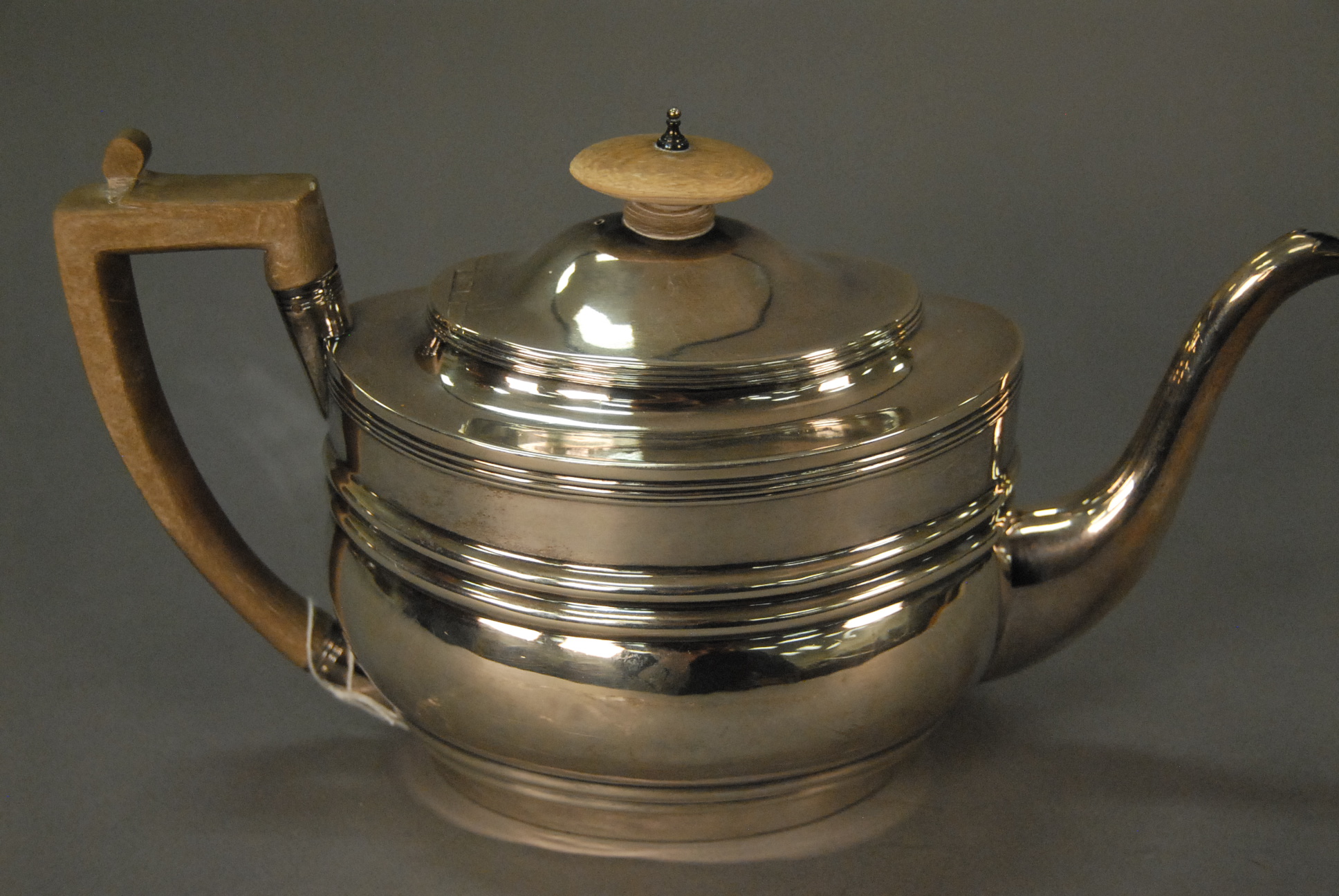 Early English tea pot with wood handle and finial. ht. 6in. 15.1 t oz.