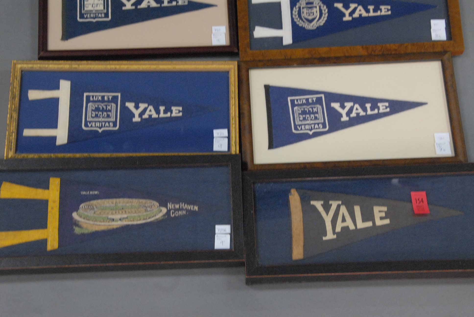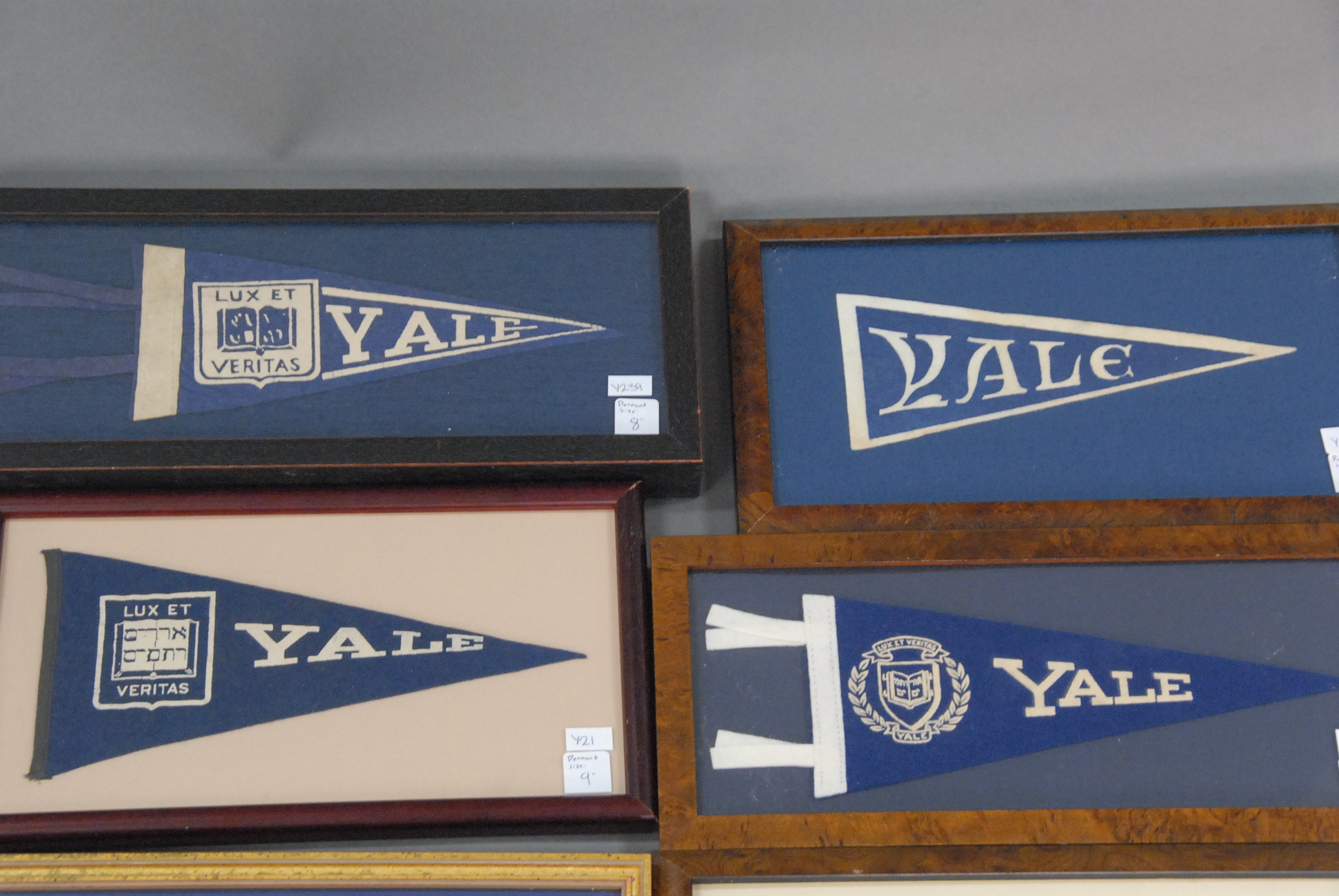 Eight small Yale Pennants, all framed, 8 – 9.