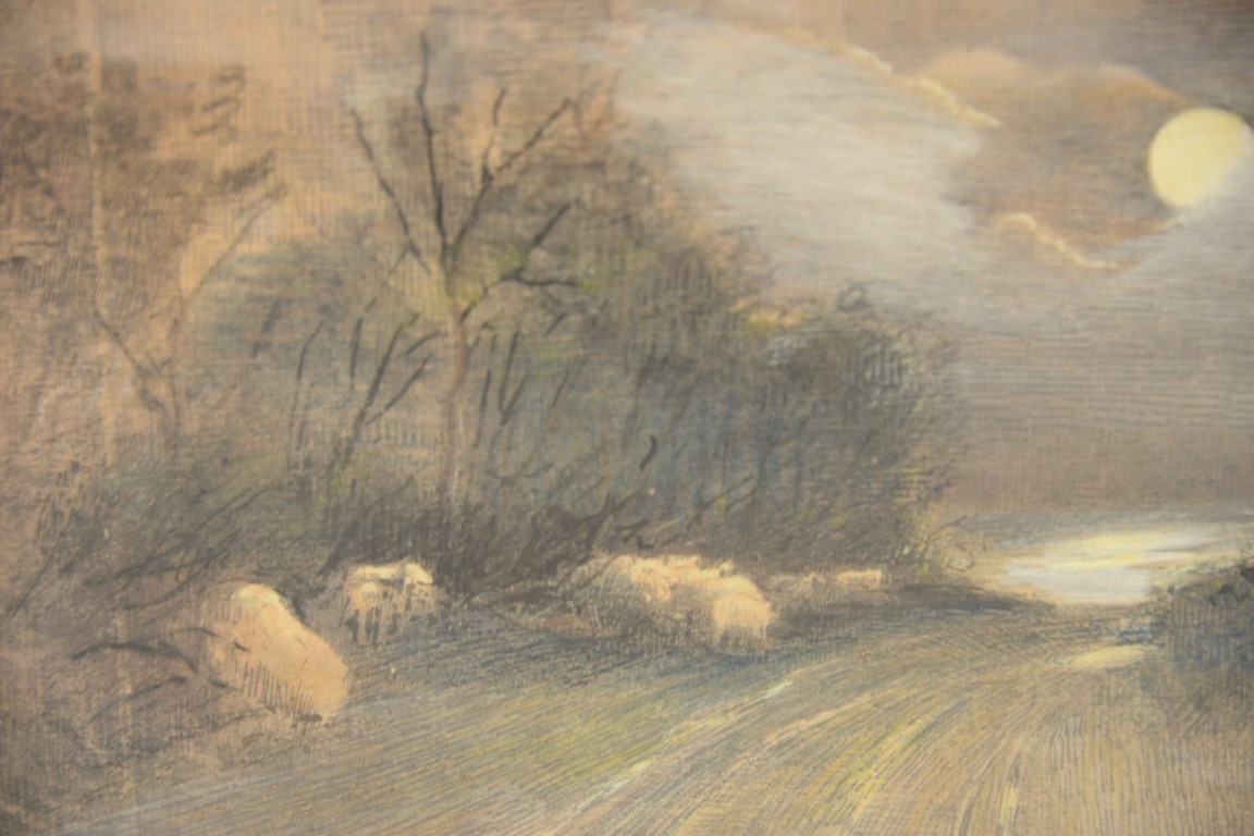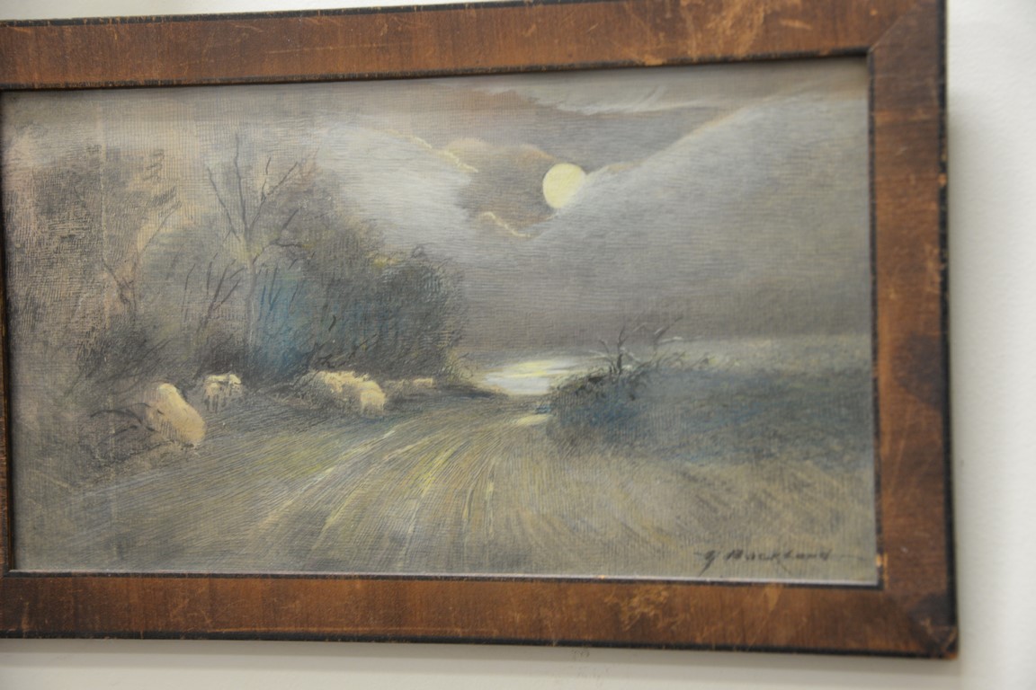 Lot 154: Harlan Paige Buckland two mixed media on paper Landscape with Moonlight Sky signed lower right: H. Buckland 5 3/4 x 10…