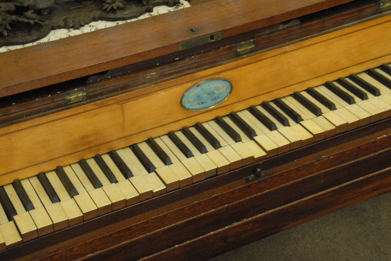 John Kearing & Son N.Y., pianoforte circa 1790-1820 with inlaid cabinet board as is, lg. 63in.