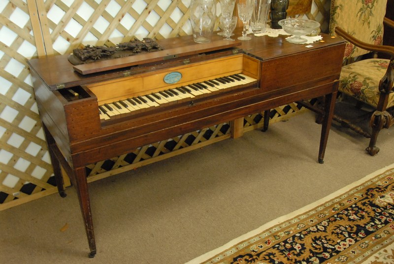 Lot 154: John Kearing & Son N.Y., pianoforte circa 1790-1820 with inlaid cabinet board as is, lg. 63in.