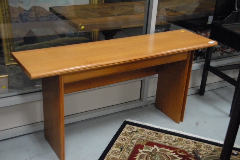 Lot 154: Late teak Danish Modern console / flip top table, ht. 29in. lg. 59in. opens to 31 in.