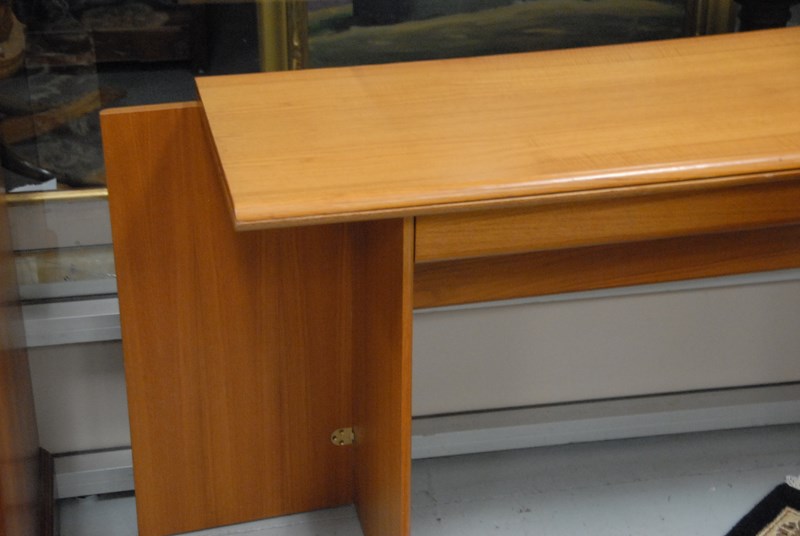 Late teak Danish Modern console / flip top table, ht. 29in. lg. 59in. opens to 31 in.