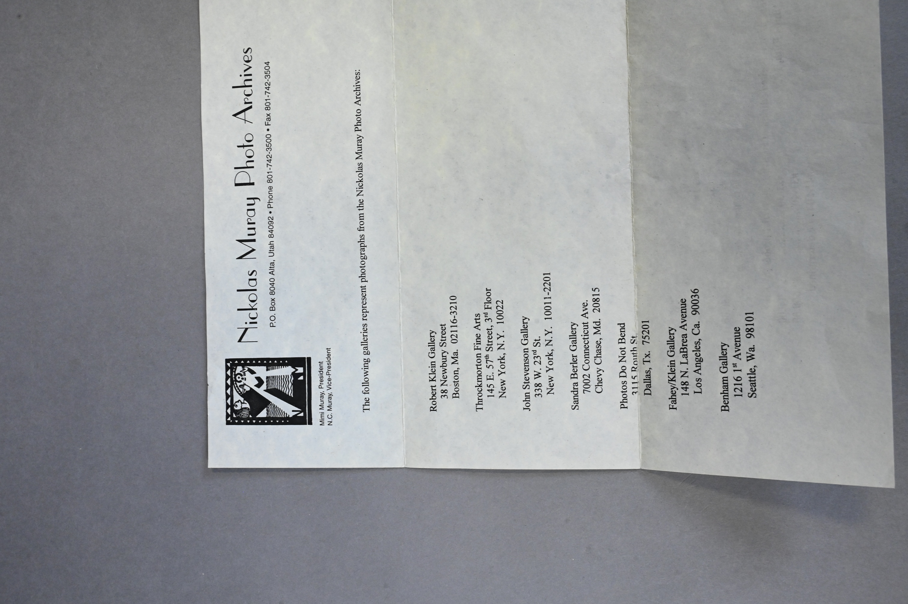 Signed and inscribed on verso by Nickolas Muray Photo Archives