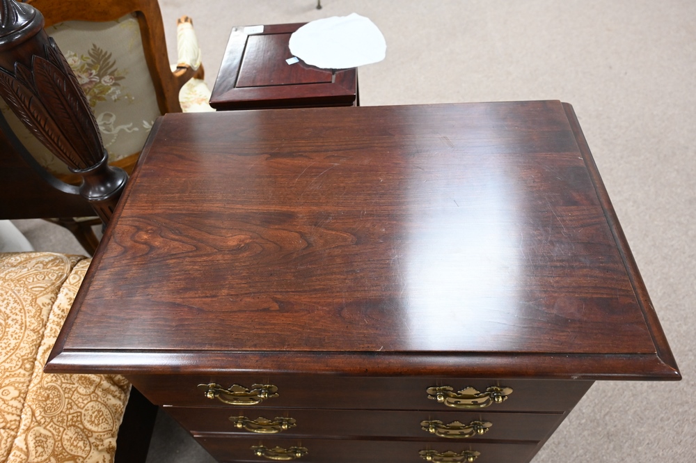 Lot 154: Pair of Cherry Diminutive Four Drawer Chests, height 31 inches.