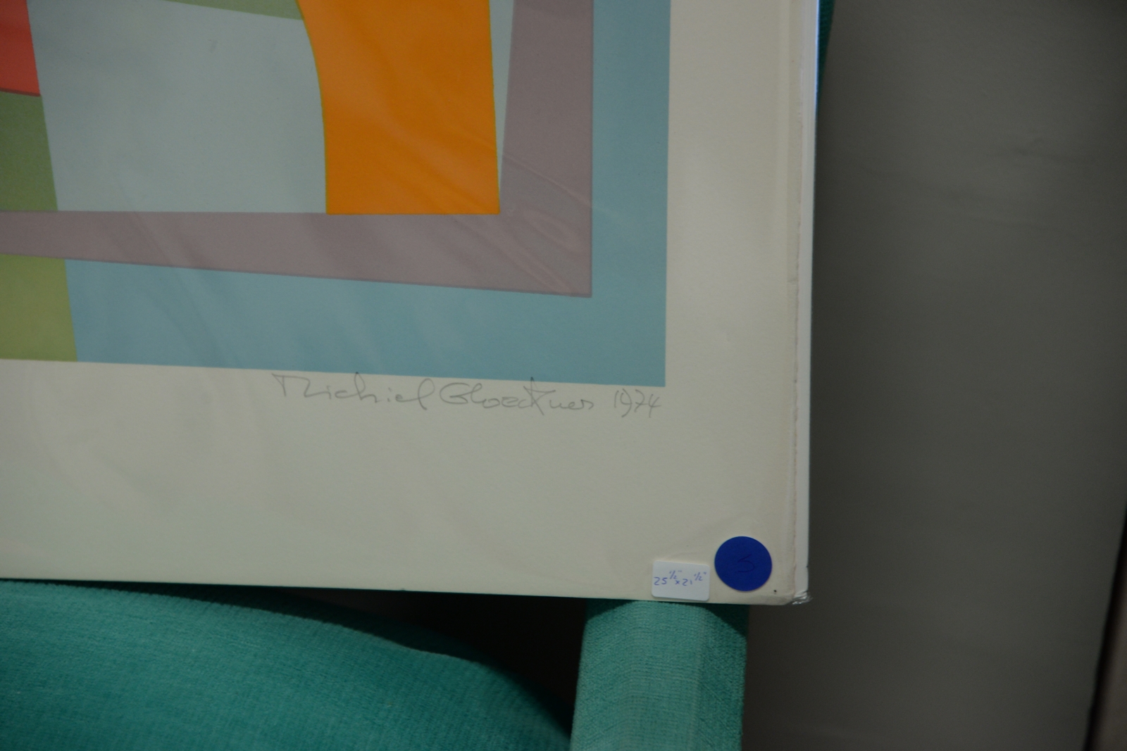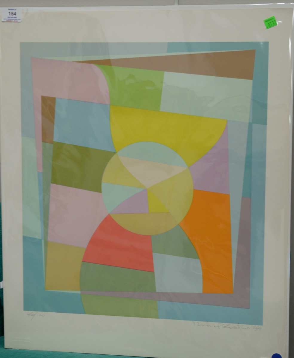 Lot 154: Two geometrical abstract lithographs including Richard Glockner lithographed signed, dated, and numbered Richard Glockner 1974 46/10…
