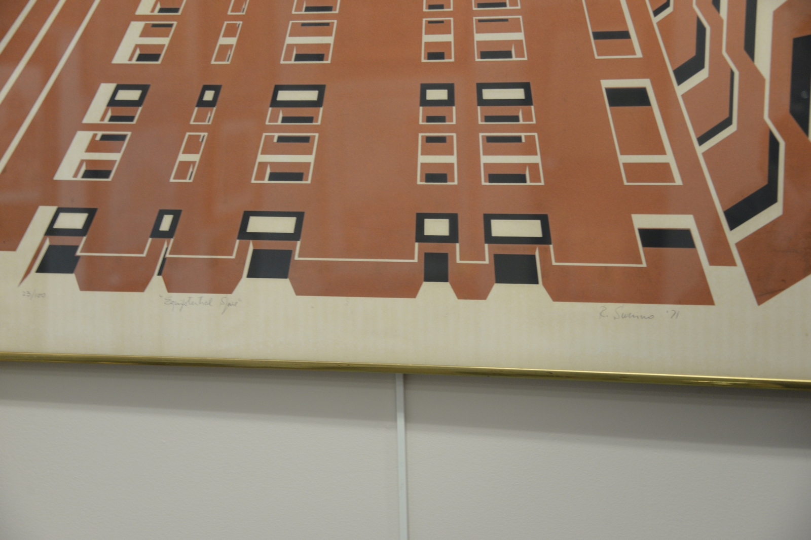 Two geometrical abstract lithographs including Richard Glockner lithographed signed, dated, and numbered Richard Glockner 1974 46/100 25 1/2 x 21 1/2 and a pencil signed lithograph signed and titled illegibly and numbered 23/100 33 x 31.