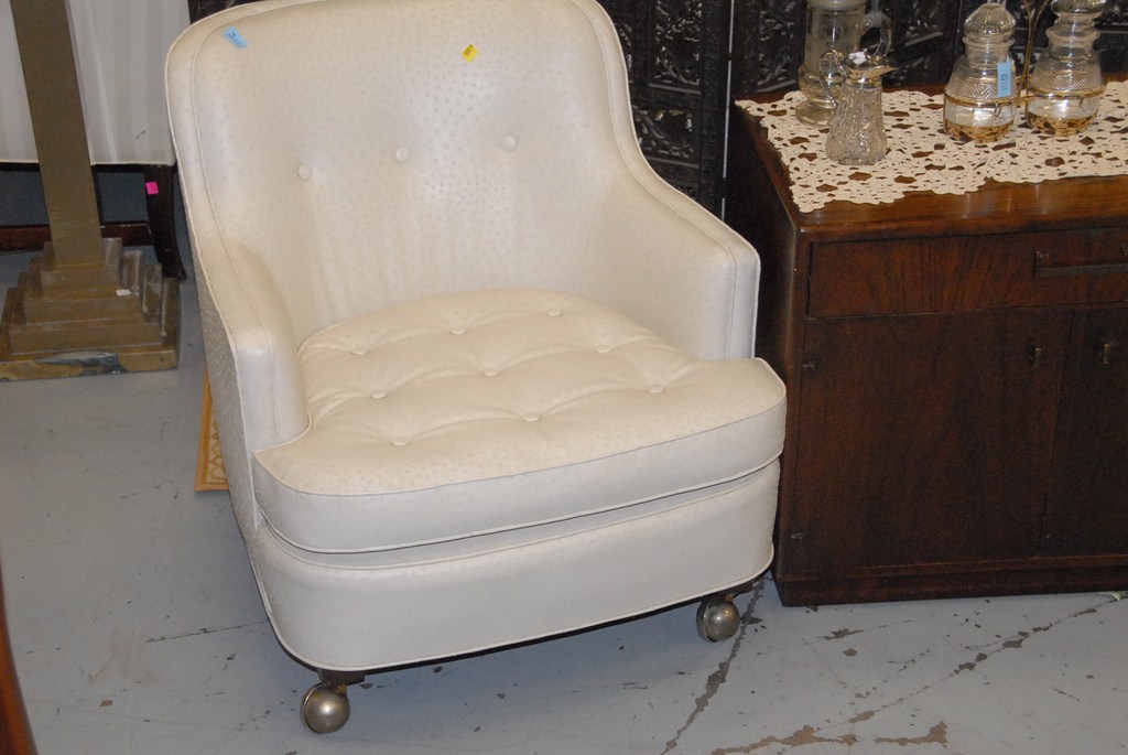 Lot 154: Vinyl upholstered chair in manner of Ostrich