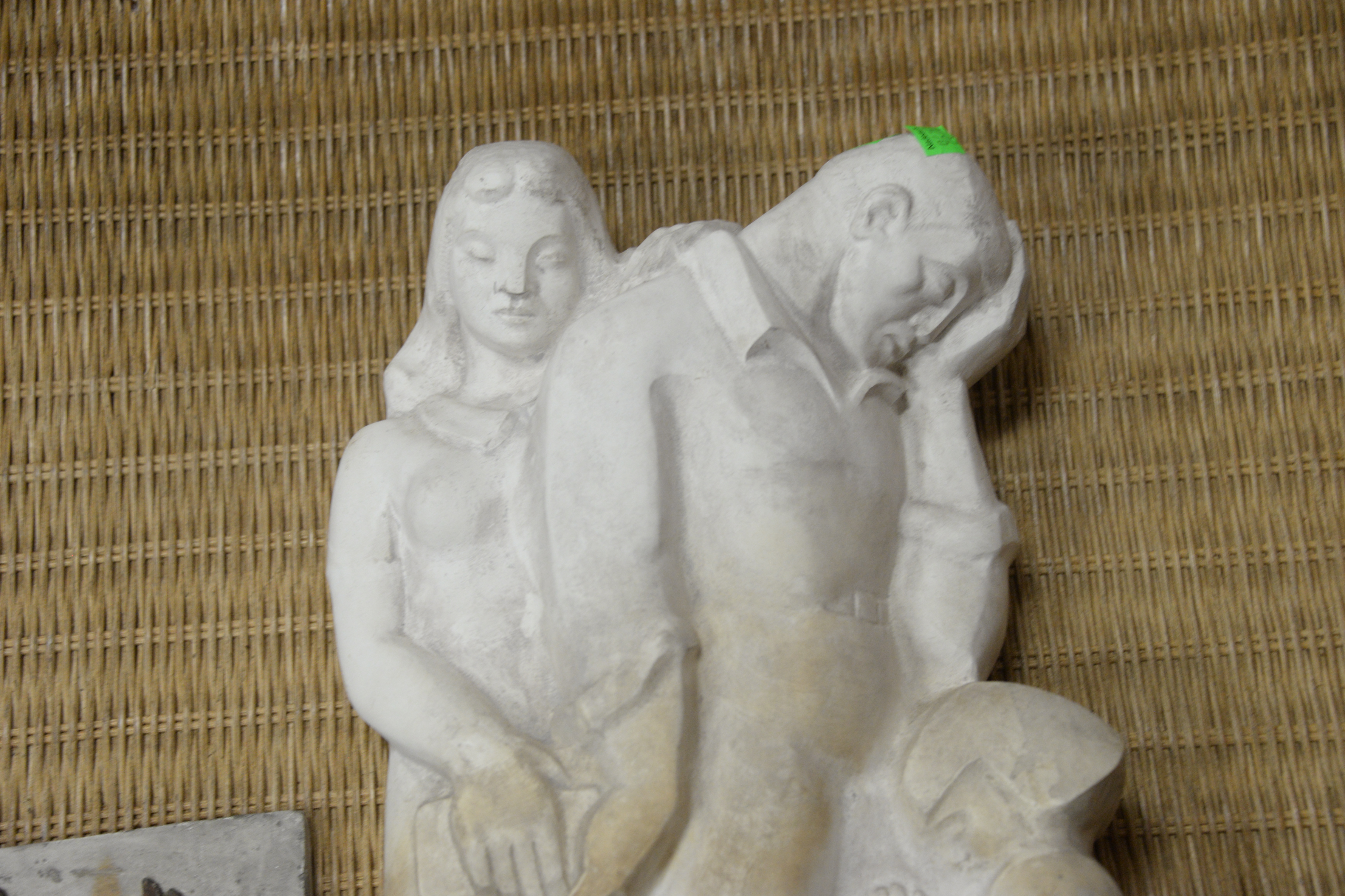 Lot 154A: Two Piece Plaster Group to include hanging plaster cast of a grieving family, unsigned along with a square plaque with embossed star…