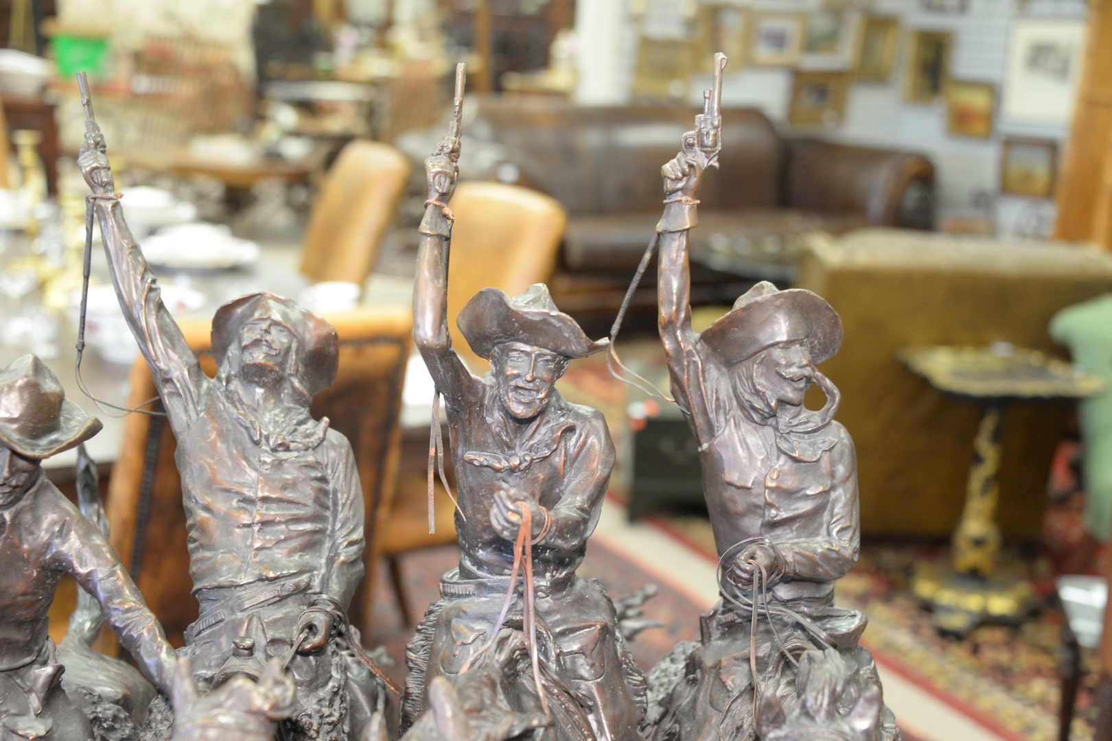 Lot 155: After Frederic Remington American, 1861 – 1909 Coming Through the Rye bronze with brown patina inscribed on base ‘Frederic Remingt…