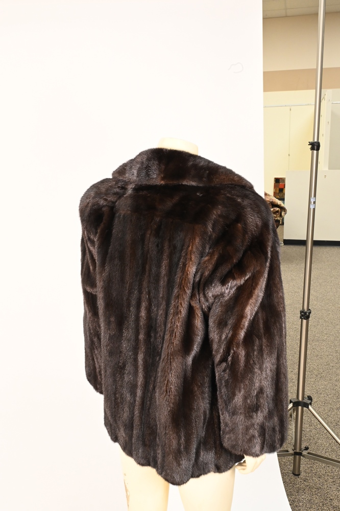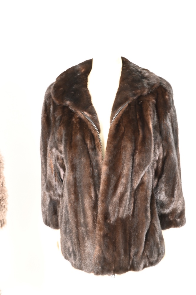 Lot 155: Brown Mink Jacket, having rounded collar, straight sleeves, side slip pockets and front zip closure, fur is supple, size medium.