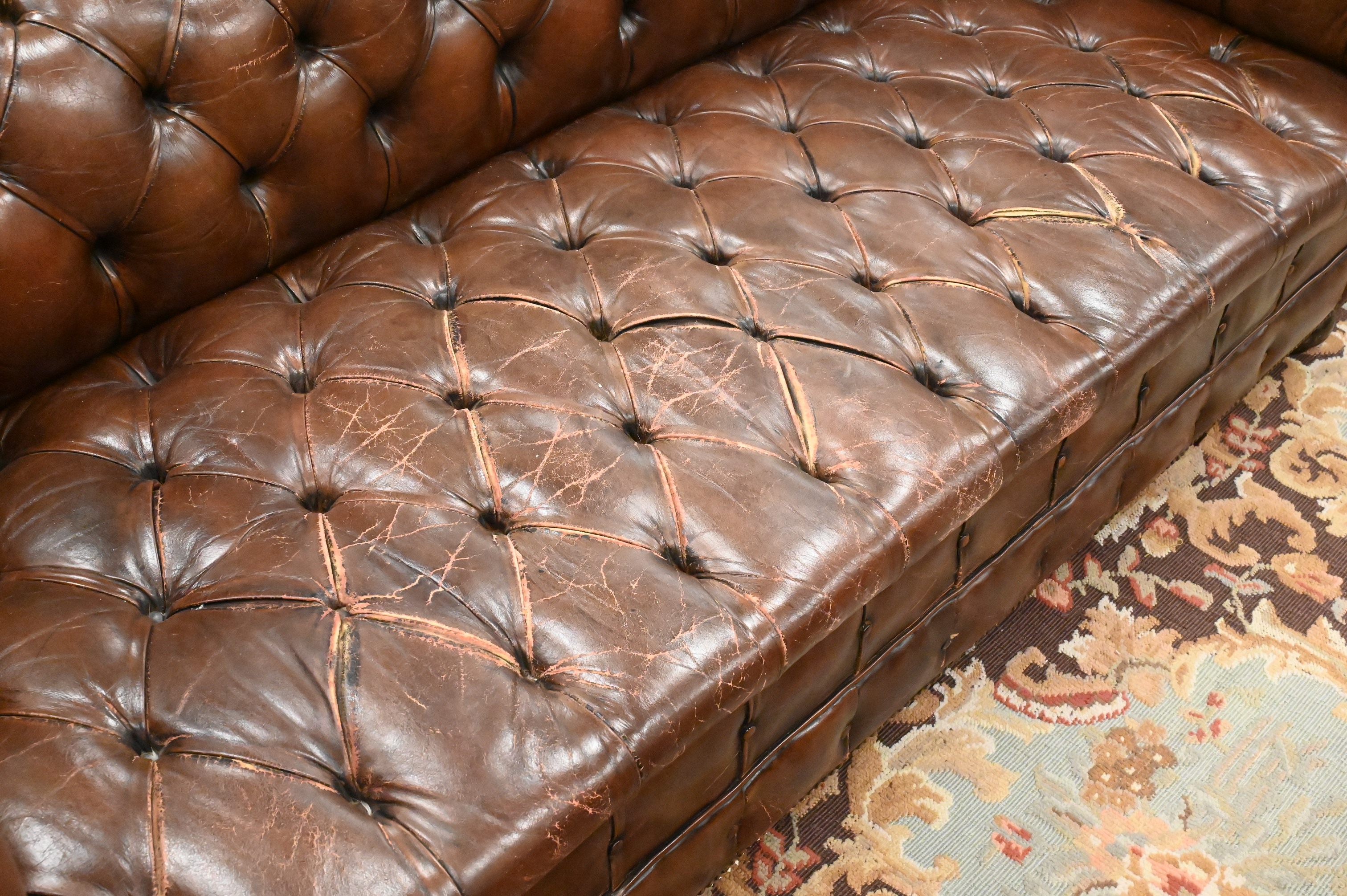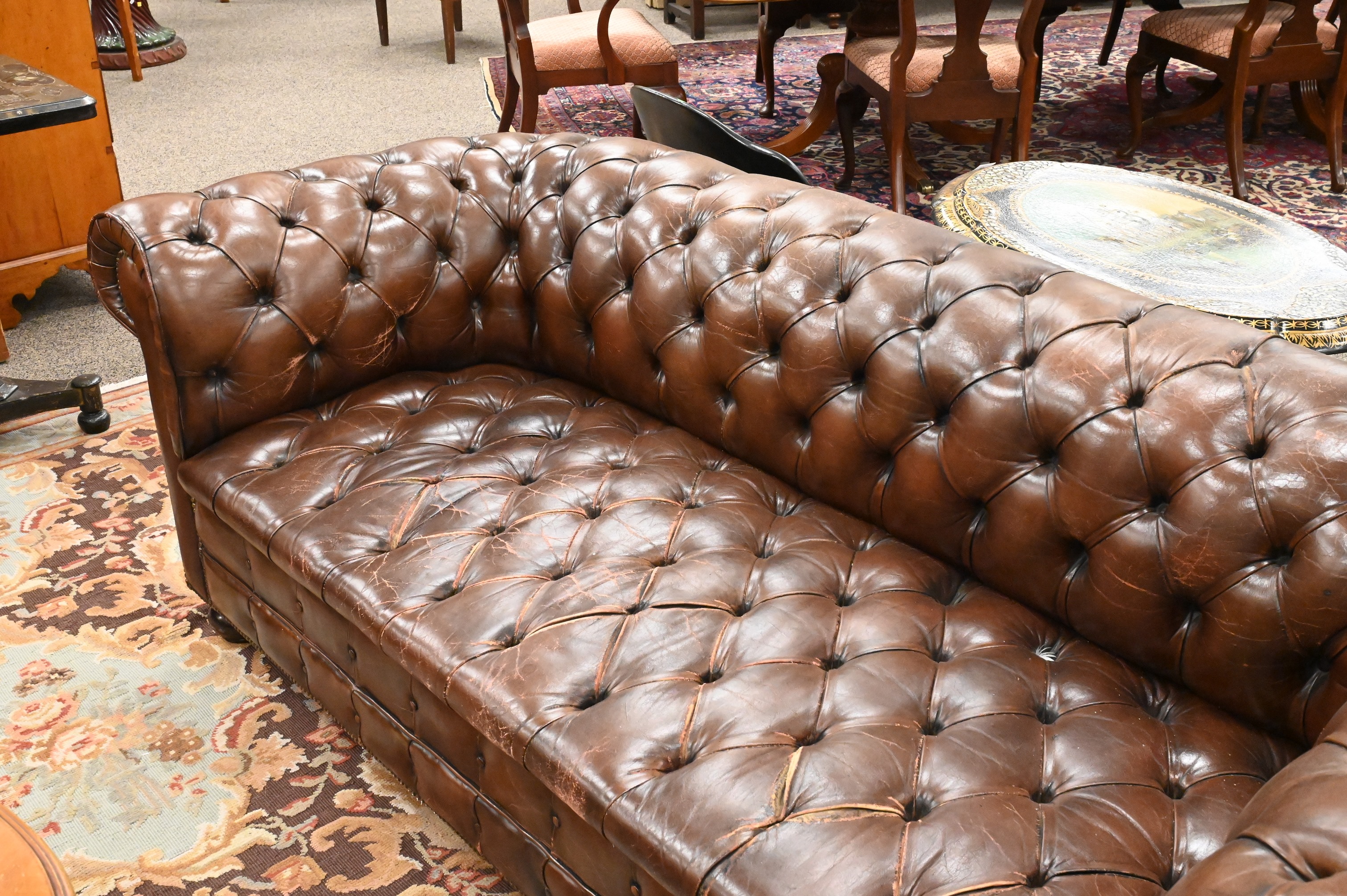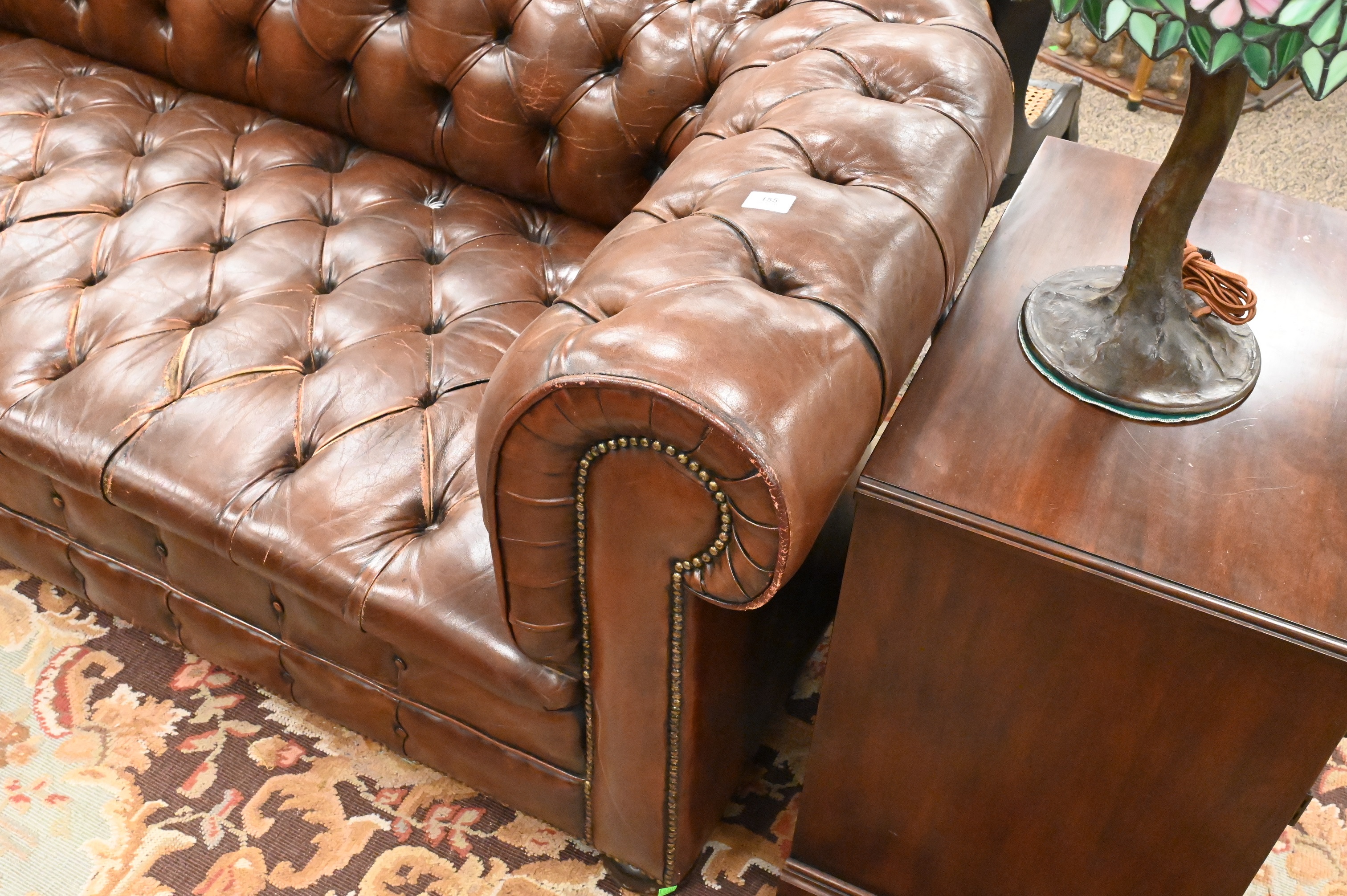 Lot 155: Chesterfield Brown Leather Tufted Sofa