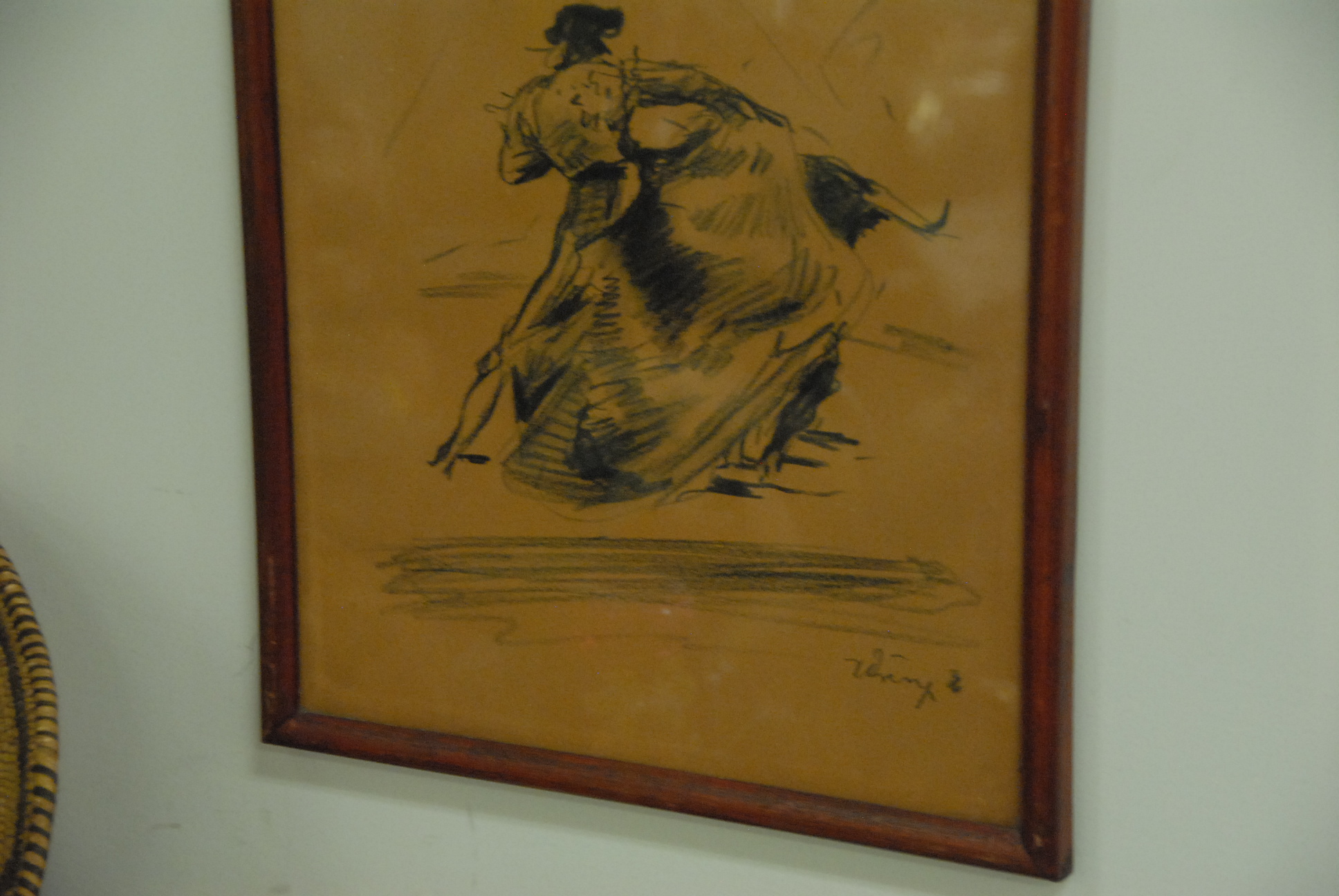 Lot 155: Group of seven framed charcoals bull fighting signed lower indistinctly, approximately 10 1/4 x 13 1/2.