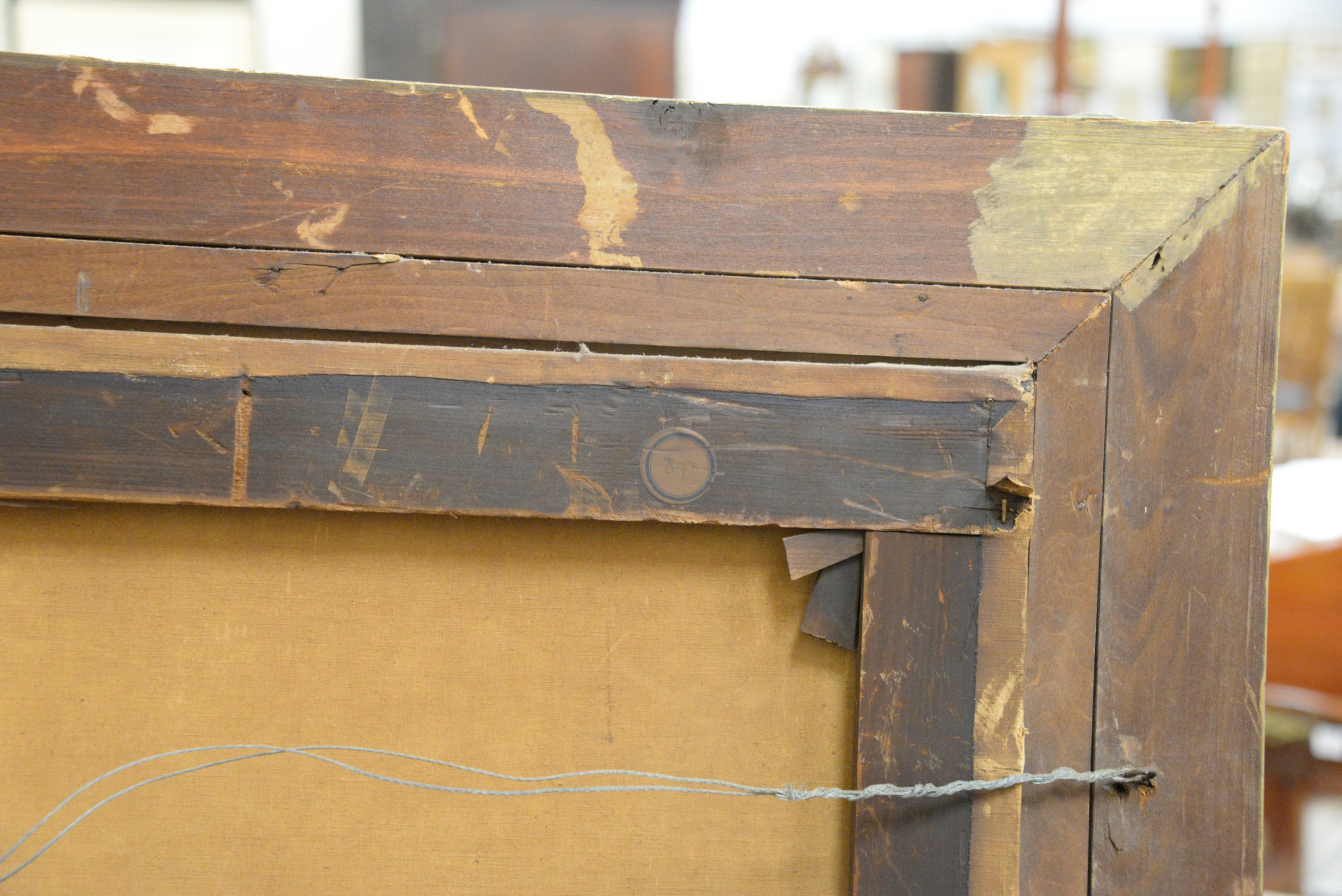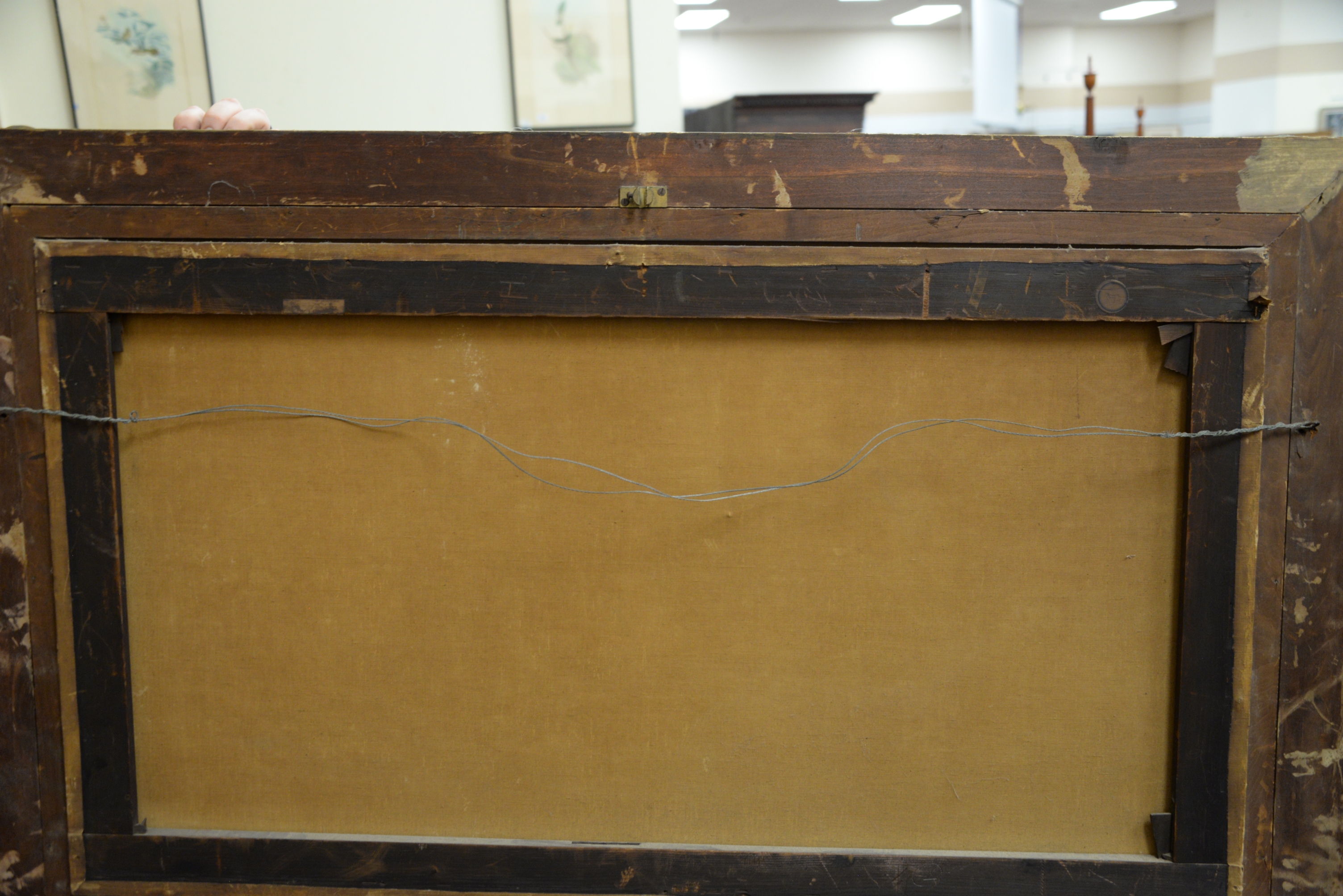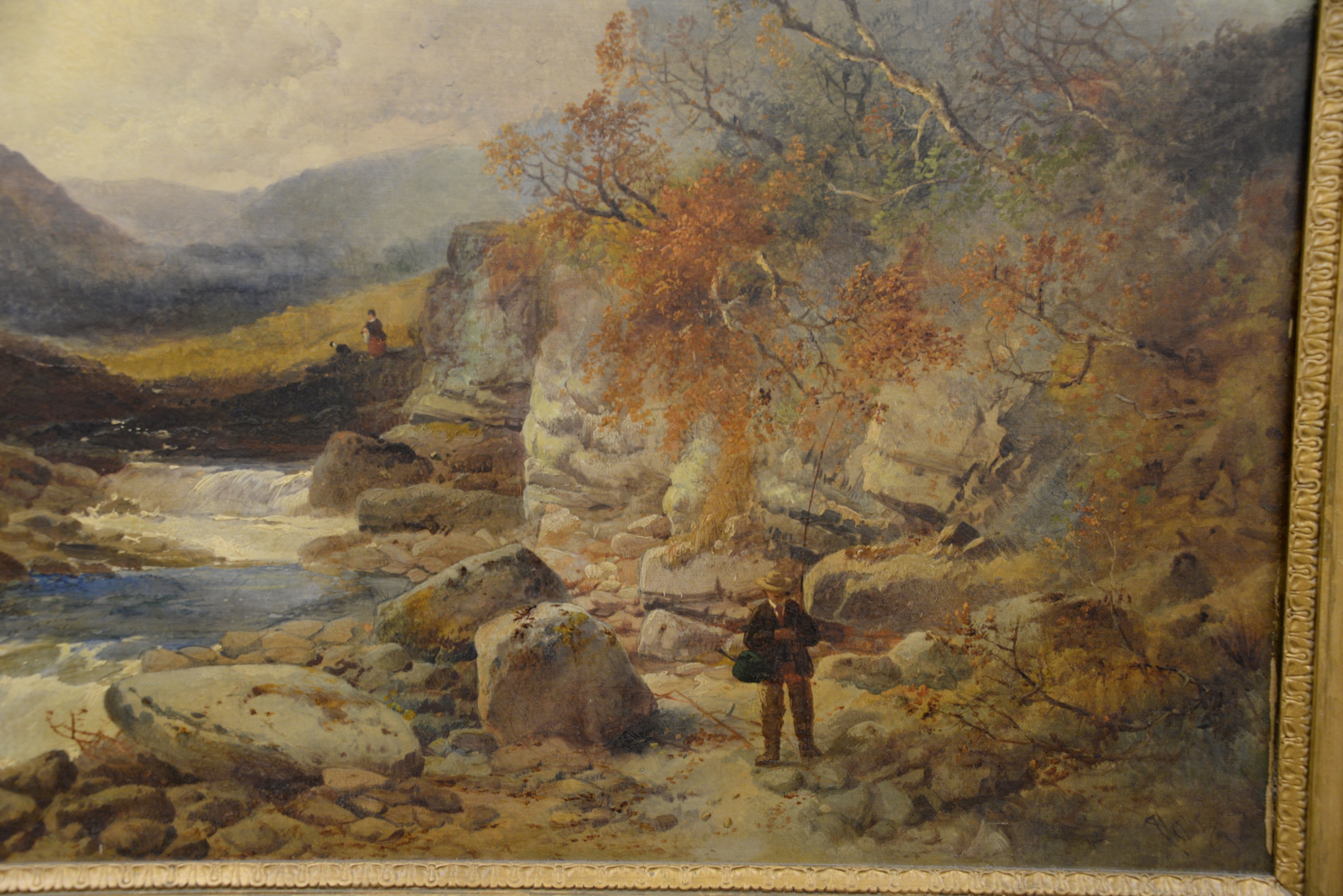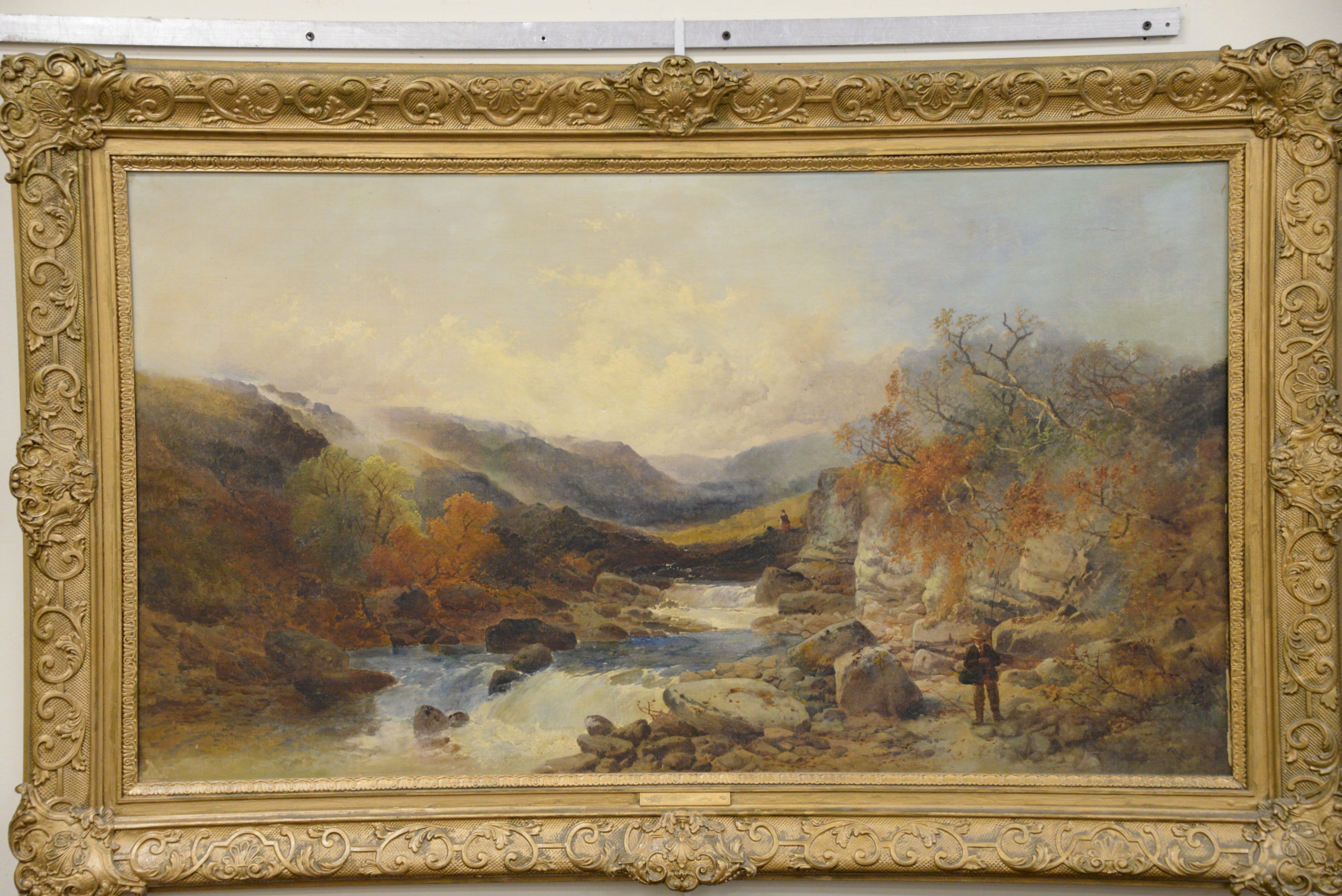 Hudson River School Style “Autumn Stream” oil on canvas 19th century, unknown artist, illegible signature lower right, 23 1/2″ x 41 1/2″.