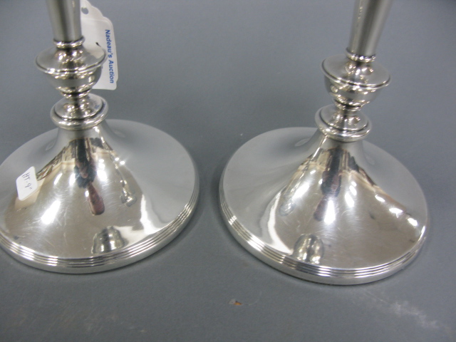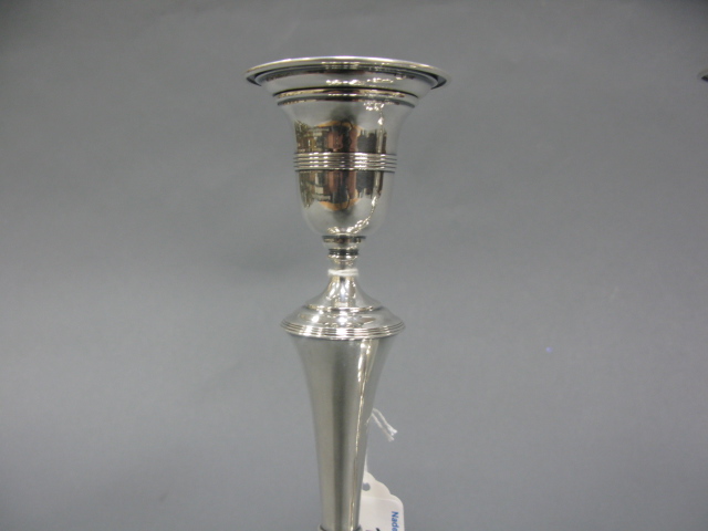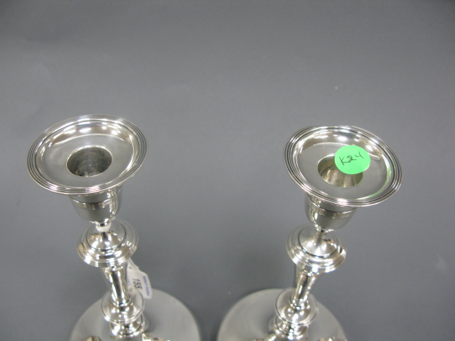 Pair of English silver candlesticks, weighted.