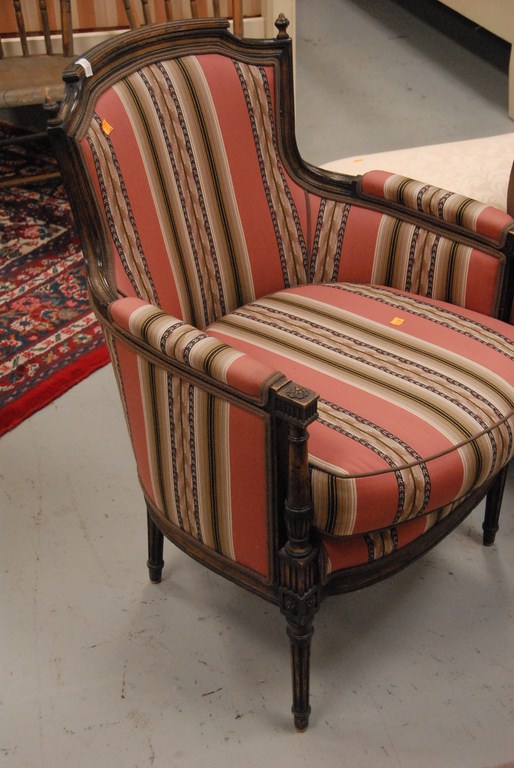 Pair of Louis XV upholstered armchairs with custom upholstery.