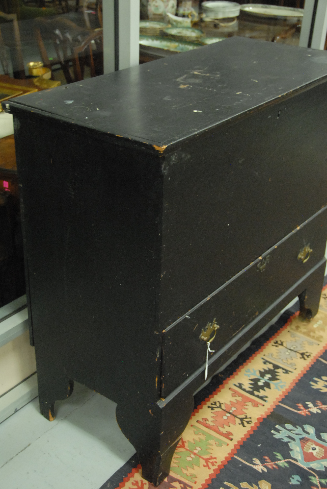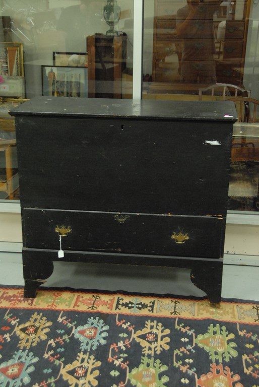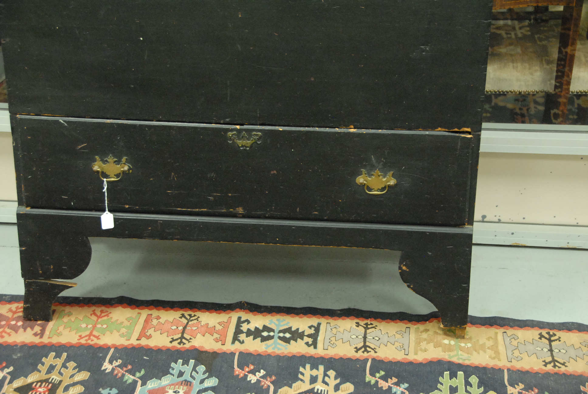 Lot 155: Primitive blanket chest with lift top and one drawer on high bracket base. ht. 42in. wd. 43in.