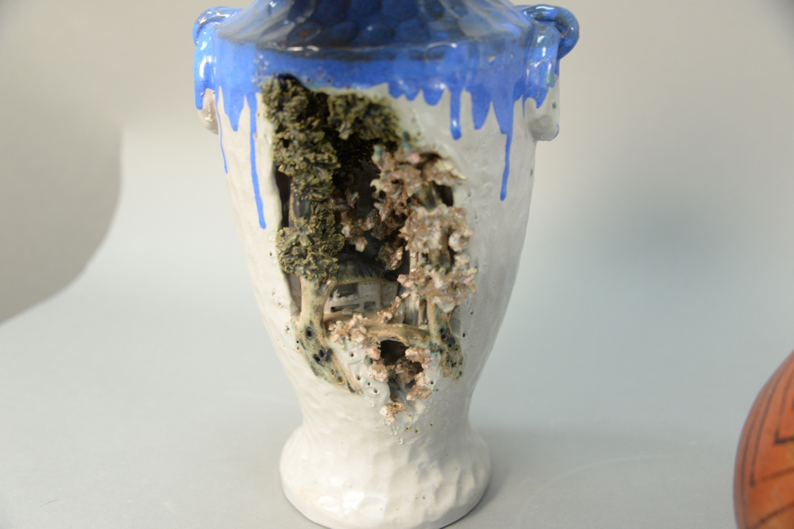 Lot 155: Satsuma three dimensional vase having mountainous three dimensional landscape with houses and trees, marked on bottom. height 12 in…