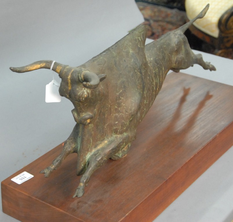Schiwetz, Berthold bronze bull sculpture on mahogany base. height 14in. length 26 1/2in.