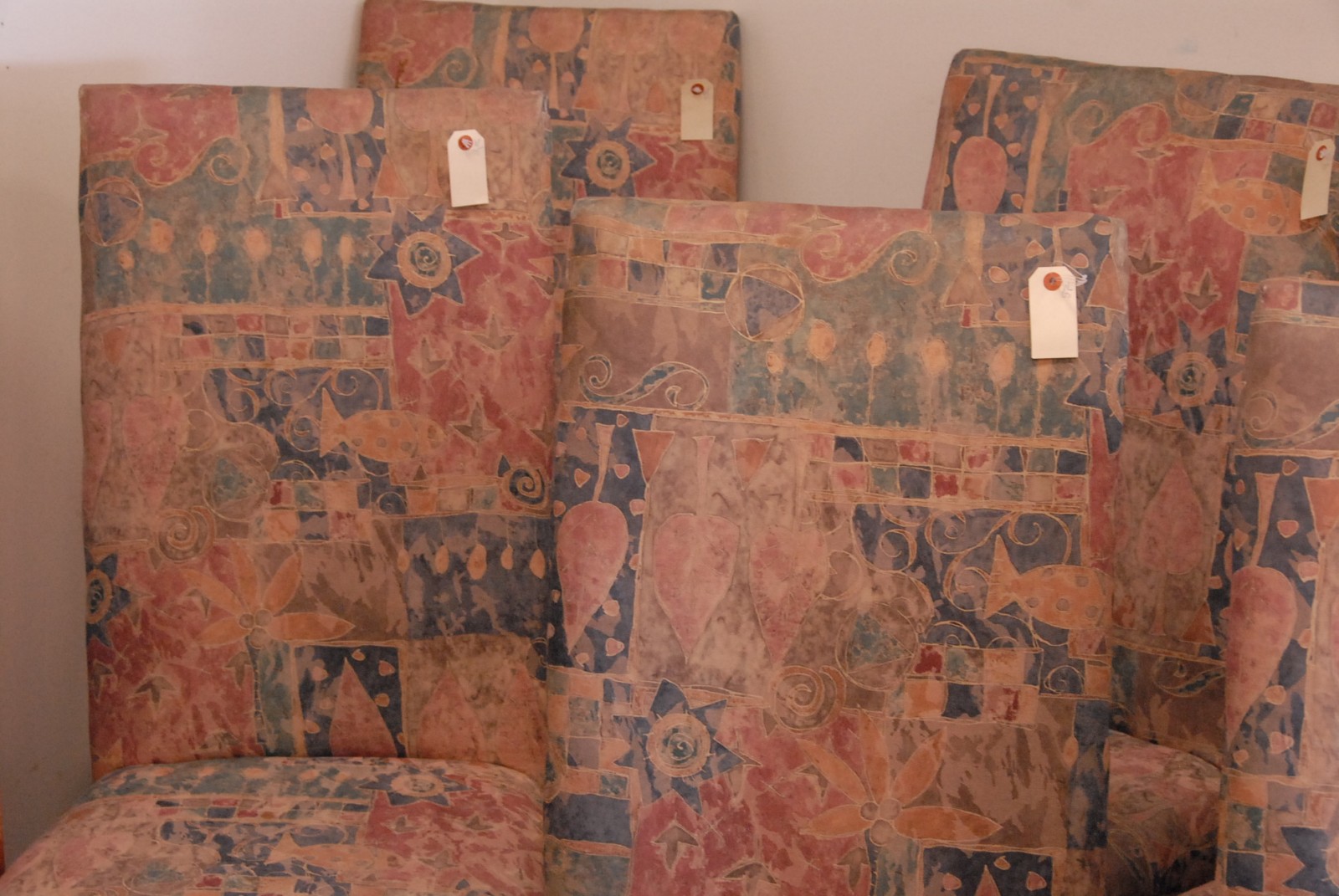 Six fully upholstered dining chairs
