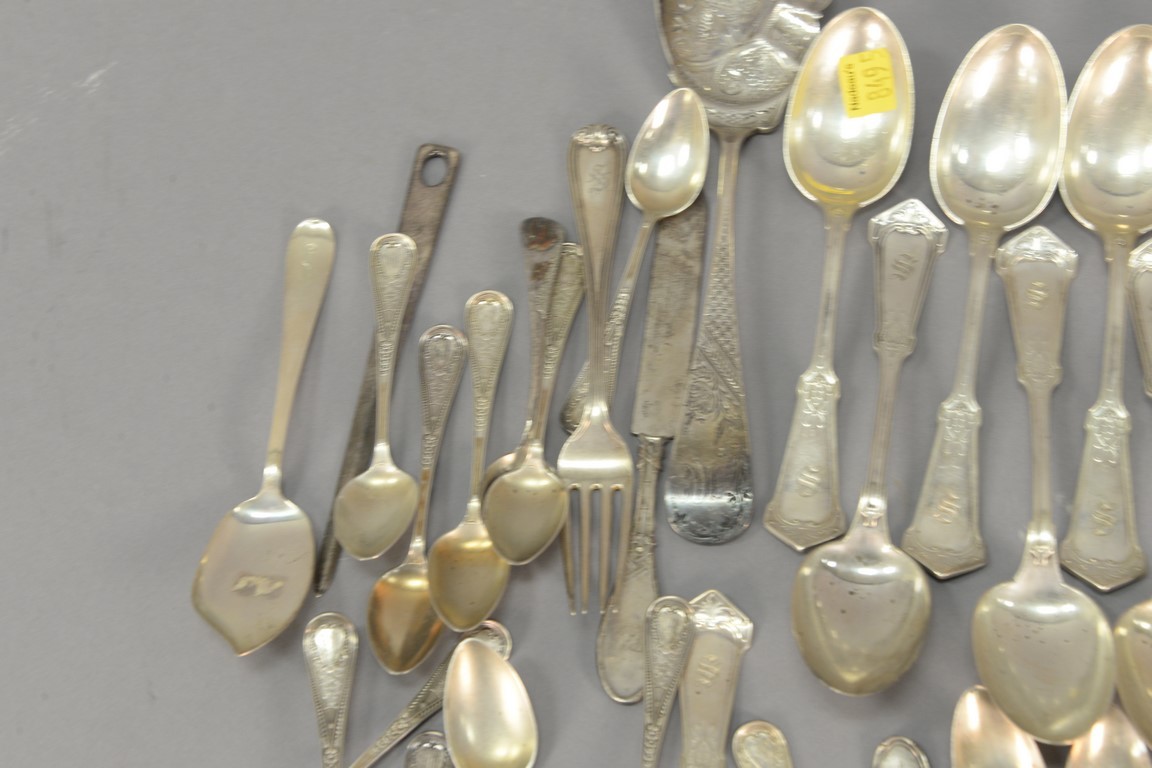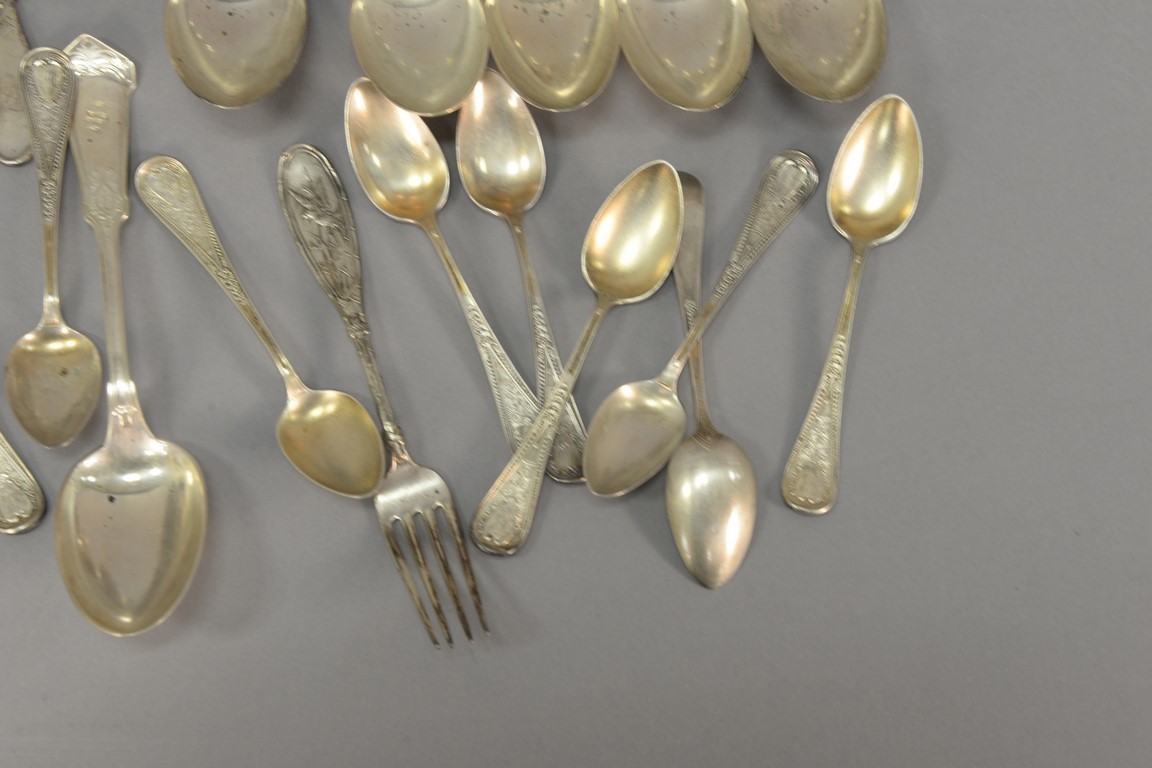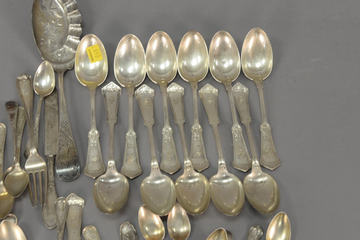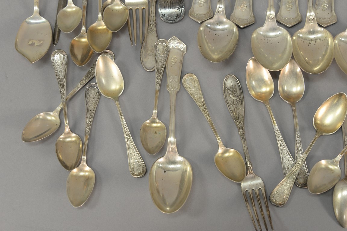 Sterling silver flatware lot with spoon, forks, and server. 33.19 troy ounces